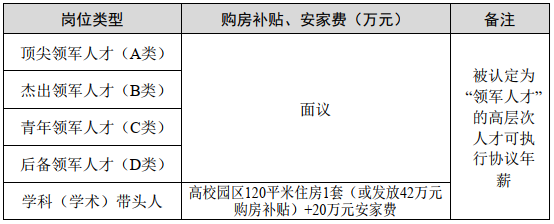 学校为加盟我校各类优秀人才提供优厚的引进待遇,具体如下: