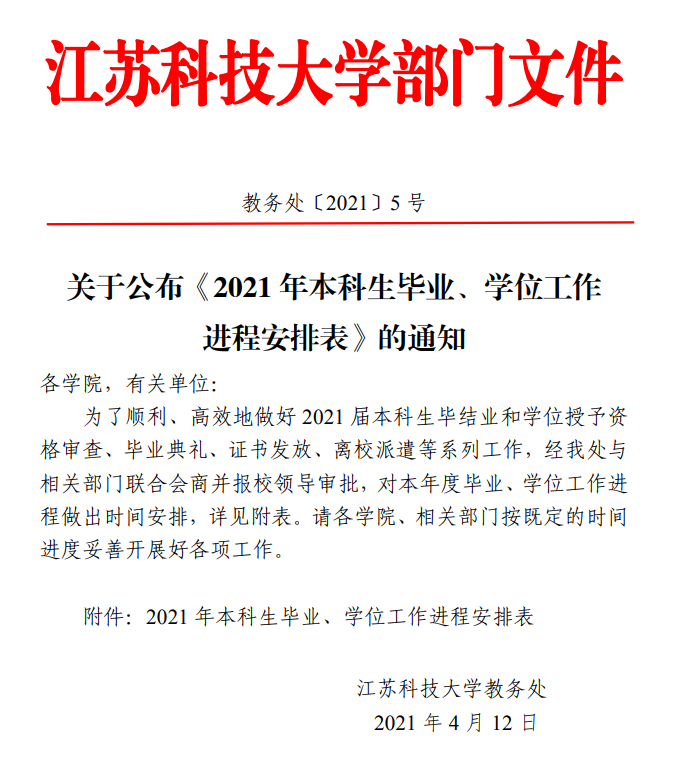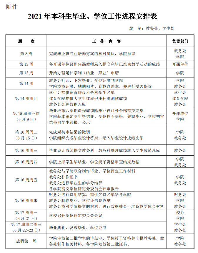关于公布《2021年本科生毕业、学位工作进程安排表》的通知