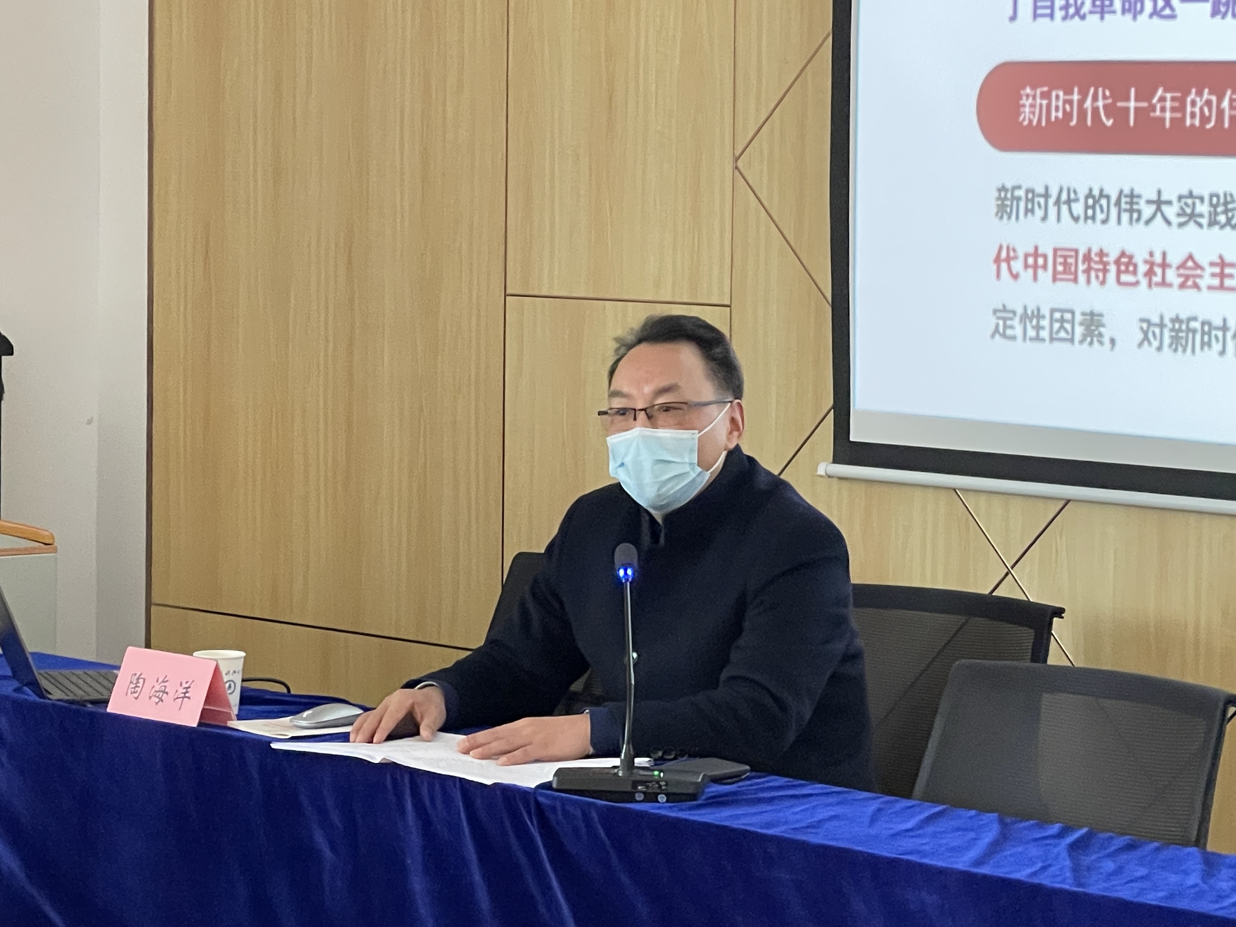 宣讲的最后,陶海洋号召与会师生:我们要认真学习领会党的二十大精神,紧密团结在以习近平同志为核心的党中央周围,高举中国特色社会主义伟大旗帜,全面贯彻习近平新时代中国特色社会主义思想,牢记空谈误国、实干兴邦,坚定信心、同心同德,埋头苦干、奋勇前进,为全面建设社会主义现代化国家、全面推进中华民族伟大复兴而团结奋斗!