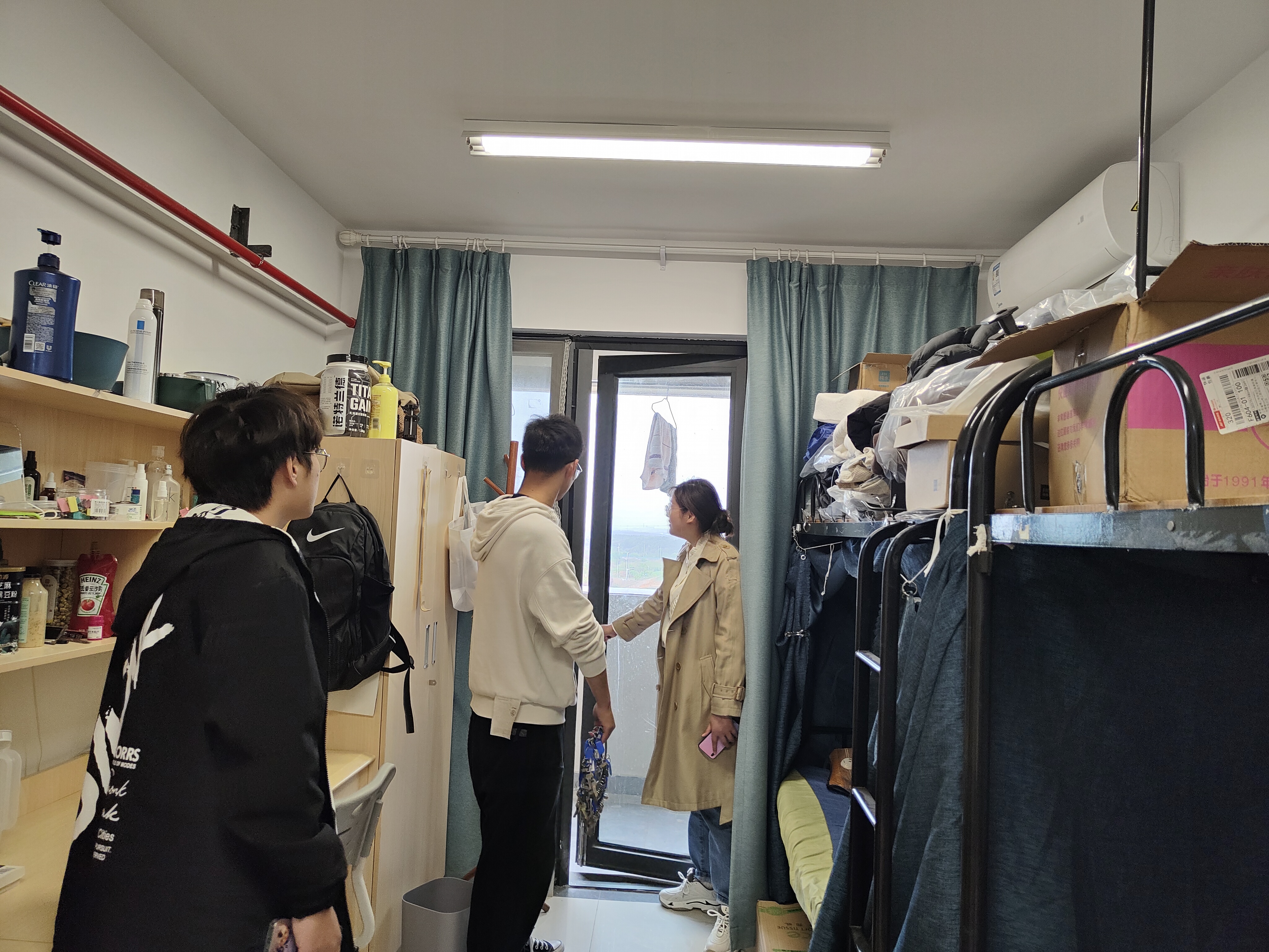 随后,研究生辅导员席娟、朱志贤与研究生班委根据宿舍卫生标准,对所有研究生宿舍进行专项检查,重点对各个宿舍的安全卫生情况进行逐一检查,针对部分宿舍存在的问题,点对点通知到宿舍同学进行整改。辅导员针对春季多风干燥的特点,叮嘱同学们不要在阳台放置杂物,防止火情,天气多变,注意个人健康防护,宿舍多通风,鼓励学生走出宿舍,加强身体锻炼。