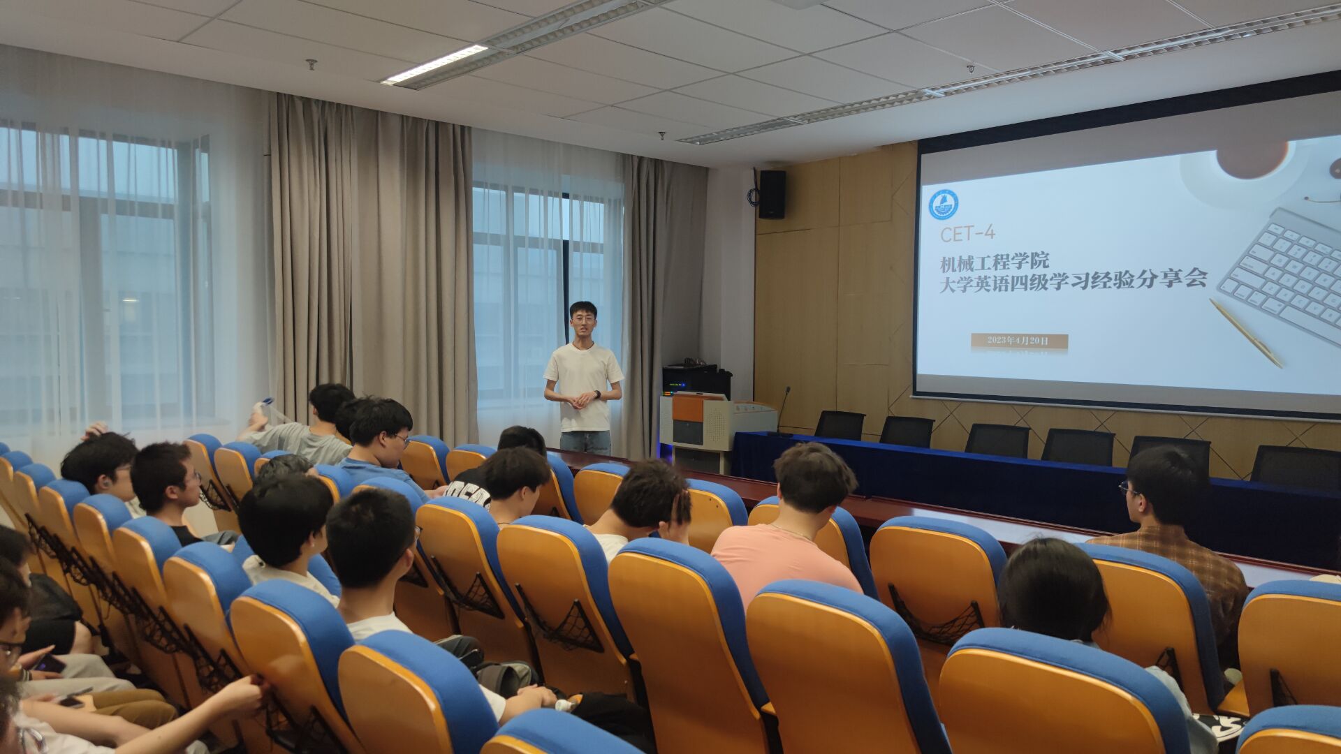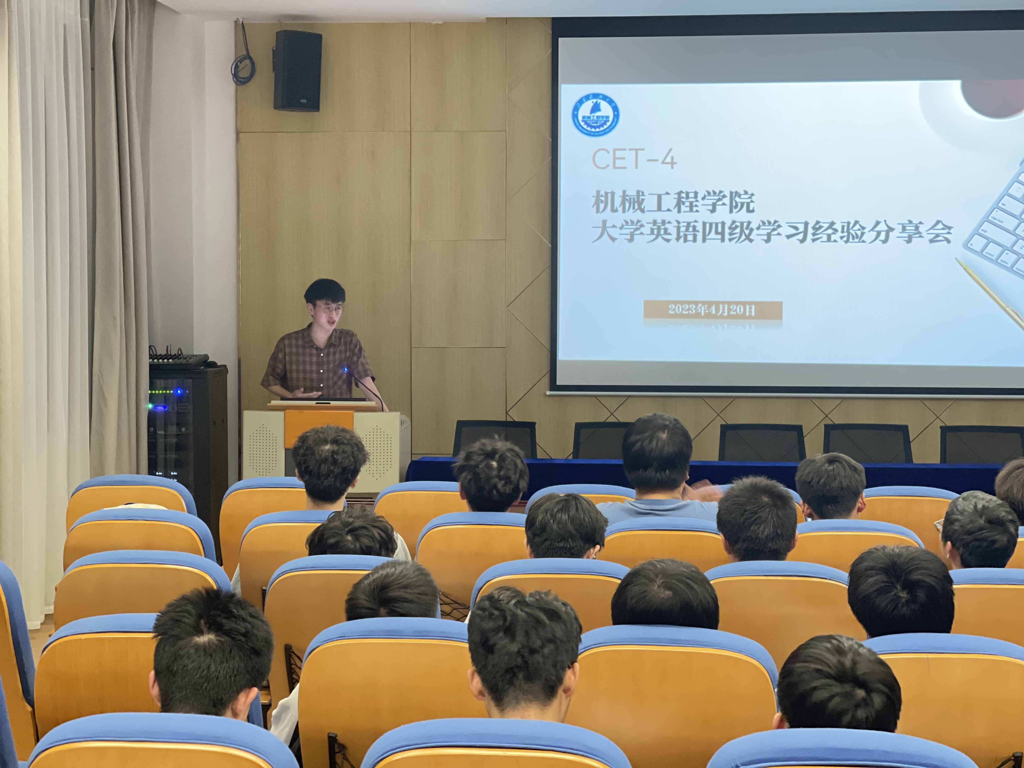 为提高同学们学习英语的积极性,帮助学生顺利通过全国大学英语四级考试,4月20日晚,机械工程学院在机械楼426报告厅举办大学英语四级经验分享会。本次会议由辅导员李福来主持,特别邀请任静兰和王平昶两位同学为大家分享四级备考经验。
