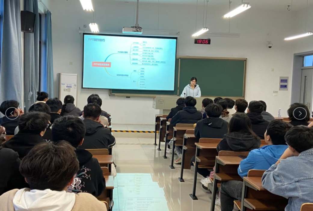 会上,赵薇为同学们传授了制作PPT的经验和心得,讲解制作一份好的PPT所需具备的条件,之后她又分享了自己的保研心得,应争取目标学校夏令营机会,同时指出有保研想法的同学要尽早准备材料、多参加竞赛提升自己的履历,同时她还分享了自己保研准备的过程。李雪同学为同学们分享了省优干和省优毕的申报材料的撰写,应“突出优势,差异化竞争”;最后详细讲解支教保研的相关知识:支教保研的意义、申请加入研究生支教团的条件、招募选拔的环节、选拔标准等等,李雪从支教保研的方向为学弟、学妹们指明了一条新的保研之路。