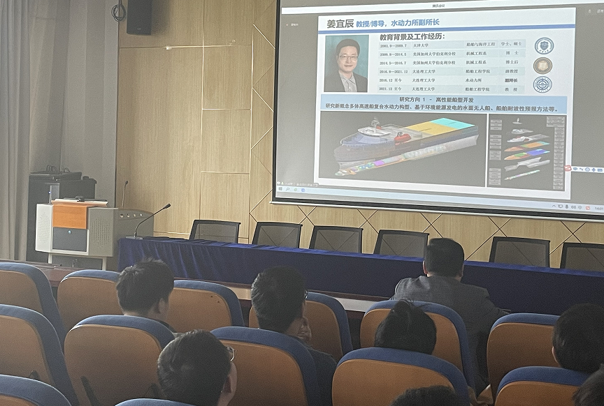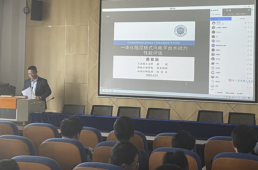 2023年4月27日下午2:00,木瓜视频 船海机械大讲堂第13讲如期举行,大连理工大学姜宜辰教授应邀以“一体化阻尼板式风电平台水动力性能评估”为主题做了精彩的线上讲座。木瓜视频 副院长(主持工作)张建主持了本次讲座,学院部分师生在426学术报告厅参加了讲座,大连理工大学相关师生线上同步参与。