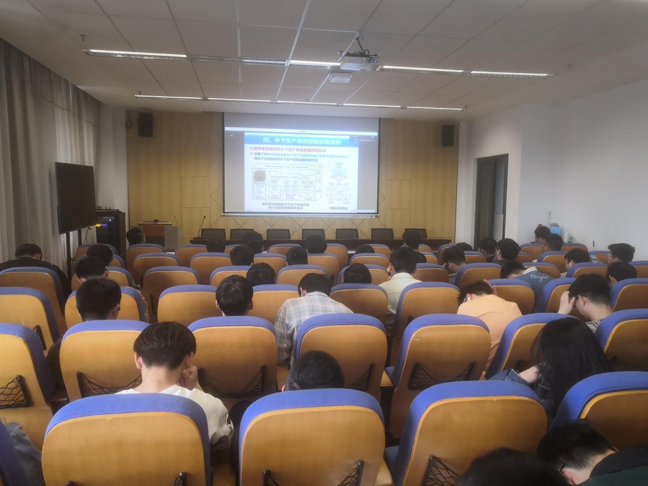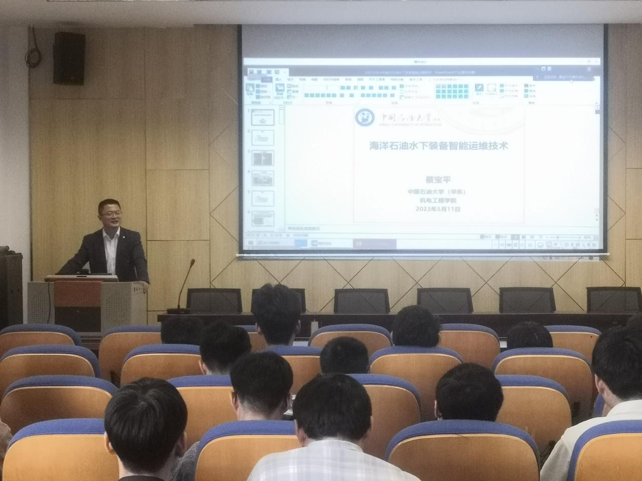 蔡宝平教授首先介绍了海洋石油资源对于我国资源开采的重要性,并重点阐述了目前海洋石油资源开采时遇到的一些安全性问题。接着,蔡宝平教授团队针对海洋石油开采安全性问题提出了一些水下装备智能运维理论与方法,重点阐述了融合多源传感器信息的海洋石油水下装备智能化故障诊断方法、大数据驱动的水下装备非永久与复合故障诊断方法、海洋石油水下装备剩余使用寿命重预测方法、基于维纳过程的海洋石油水下装备剩余使用寿命重预测方法、海洋石油水下装备“退化+恢复”的弹性评价理论与方法等研究成果,让师生们深刻了解到海洋石油开采安全预防的重要性。然后,蔡宝平教授还对水下防喷器系统智能运维案例进行了分析,阐述了如何将水下装备智能运维理论与方法运用到水下防喷器系统的故障诊断中,对理论方法进行了很好的验证,故障诊断准确率高。最后,蔡宝平教授还对水下生产系统智能运维案例进行简要阐述,重点针对电液复合型采油树进行智能运维理论与方法的验证,创建了数字孪生驱动的水下生产控制系统微小及复合故障诊断体系,提出了交互验证的水下生产系统故障诊断方法。会上,蔡宝平教授生动而精彩的报告获得了师生们的阵阵掌声。