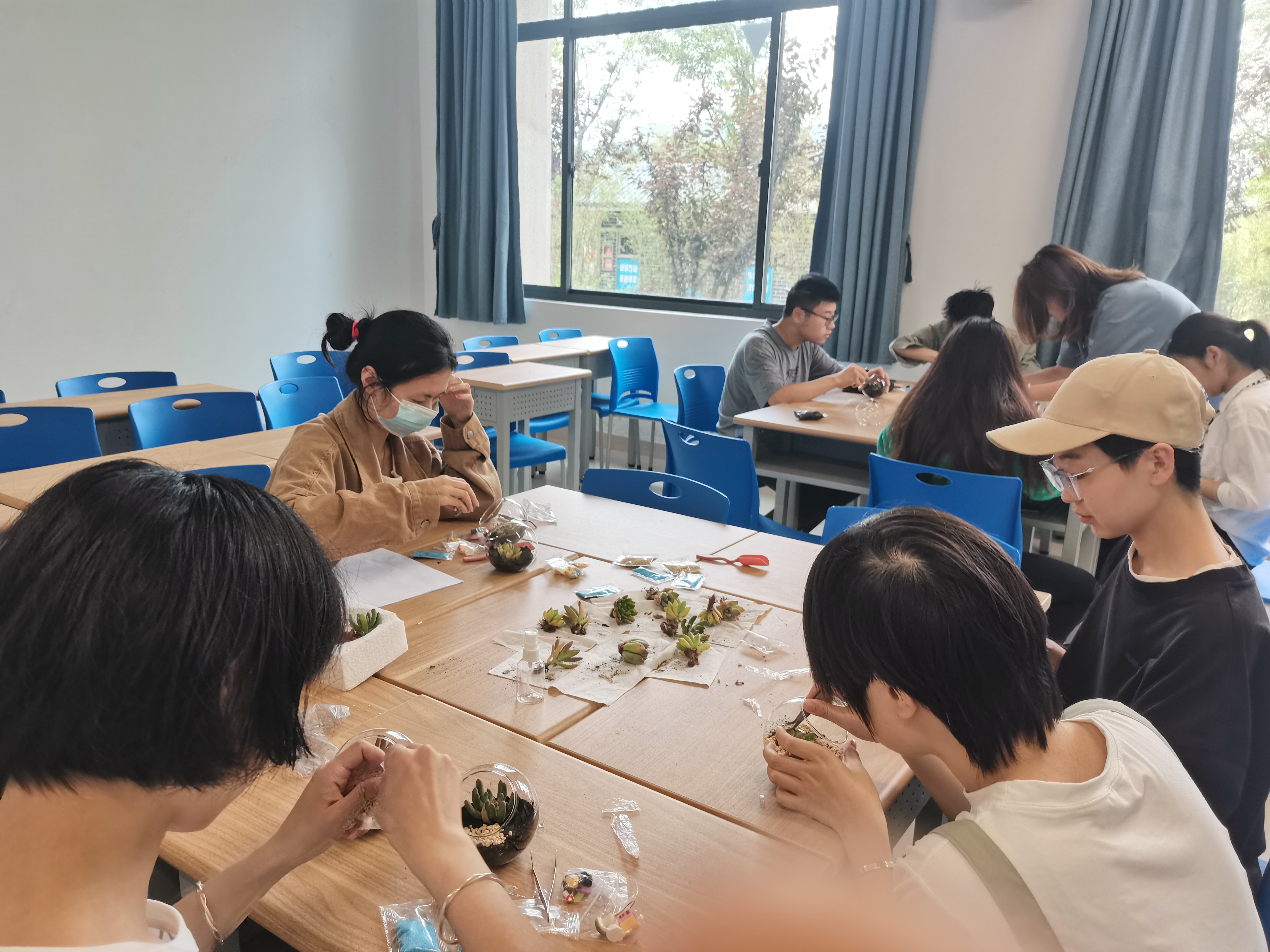 为培育学生热爱生活、珍视生命、乐观向上的心理品质,帮助学生通过园艺制作创意活动构建更加积极向上的心理状态,发现生命的美好与感动。在5月25日全国大学生心理健康日,木瓜视频 以润心行动——“趣味微景观,绿动‘心’生活”为主题举办绿植DIY活动。本次活动由心理辅导员谭静老师主持,共21名学生参与。