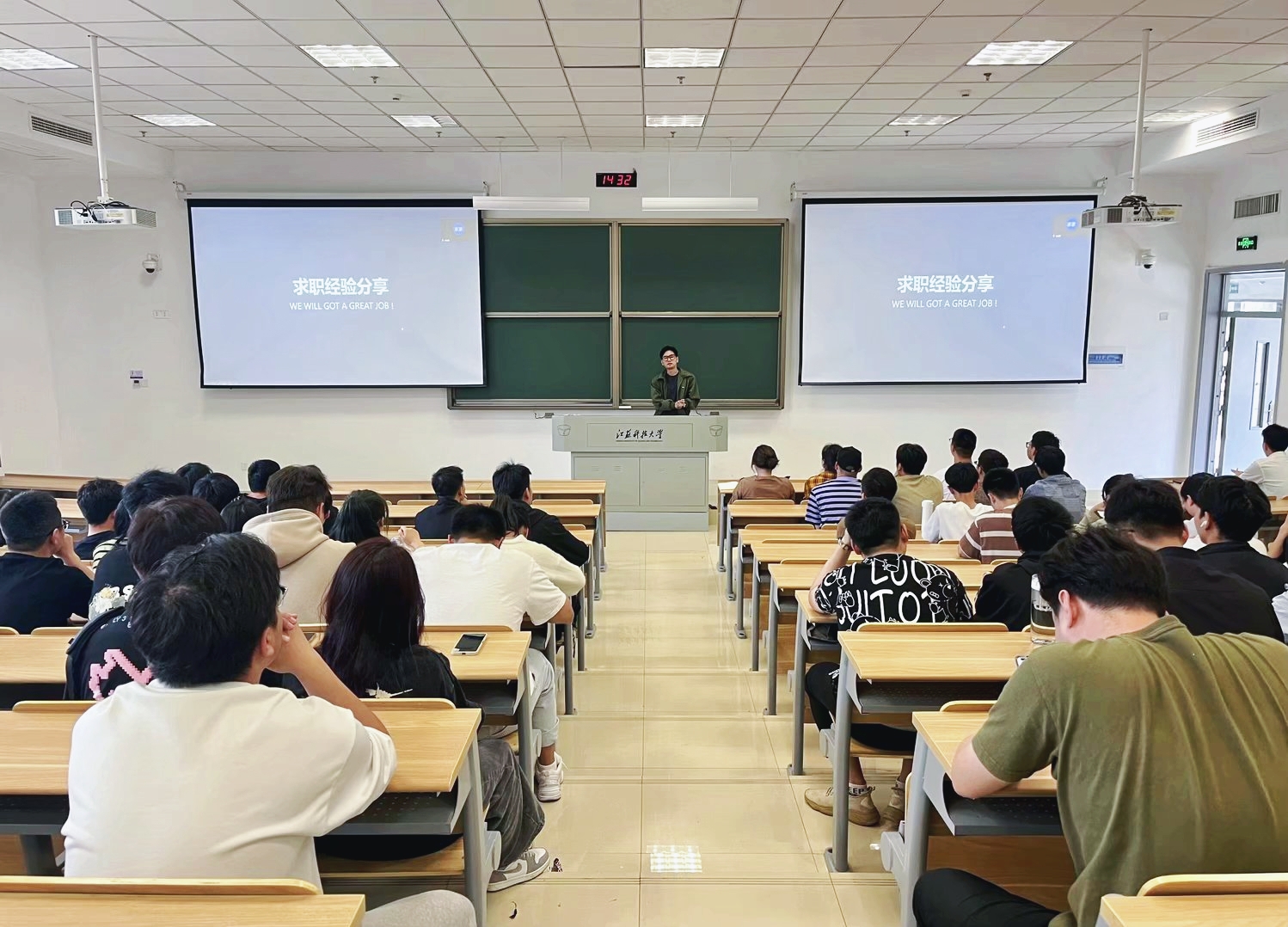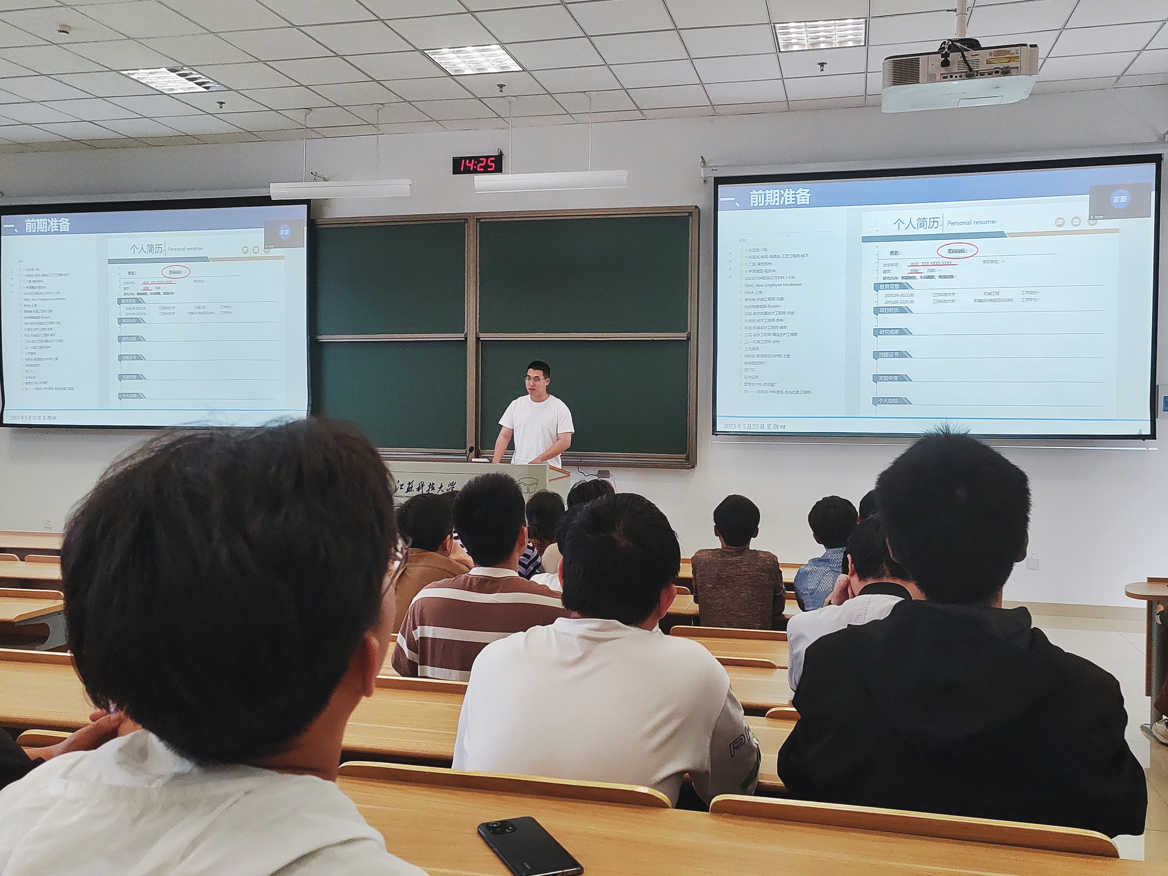 赵俊杰同学签约中船708研究所,他详细讲述了自己从简历制作到参加笔试、面试到签约的一系列过程,并分享了查找招聘信息的渠道;杨家豪同学主要分享了自己求职中石化的时间安排和参考资料;陈冶同学签约博世汽车部件有限公司,他主要介绍了自己求职的准备工作,包括了解公司、修改简历、准备英文自我介绍等,并分享了自己制作简历的经验,强调简历要突出重点,展现自己的最大优势;王学锐同学跨专业考取交通银行,他告诫同学们一定要先明确自身优劣势,尽早确定求职目标,全力准备;王荣涛同学签约中船704研究所,他分享了自己面试研究所的经历,并强调参与项目与实习经历的重要性。此外,各位学长们都强调了科研经历的重要性,告诫同学们要努力锻炼自己的科研能力,提高自己的竞争优势。在最后的自由提问环节,同学们就求职备考的注意事项等问题进行积极询问和互动。
