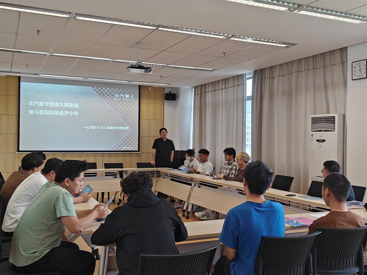 招聘会现场气氛热烈,同学们对北汽重卡的介绍和宣讲非常感兴趣。顾经理详细介绍了北汽重卡作为国内一流重型汽车制造企业的背景和实力,以及其在市场上的竞争优势。他向同学们强调了北汽重卡对人才的重视和培养计划,鼓励他们积极参与企业的实践项目和培训计划,为个人的职业发展提供良好的平台和机会。