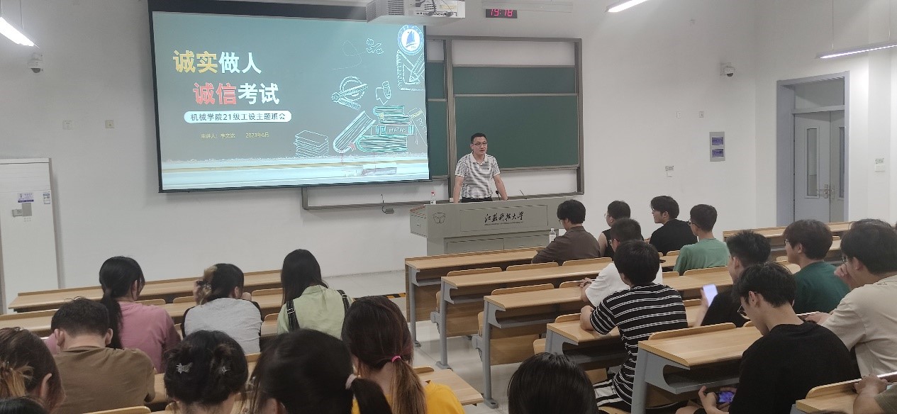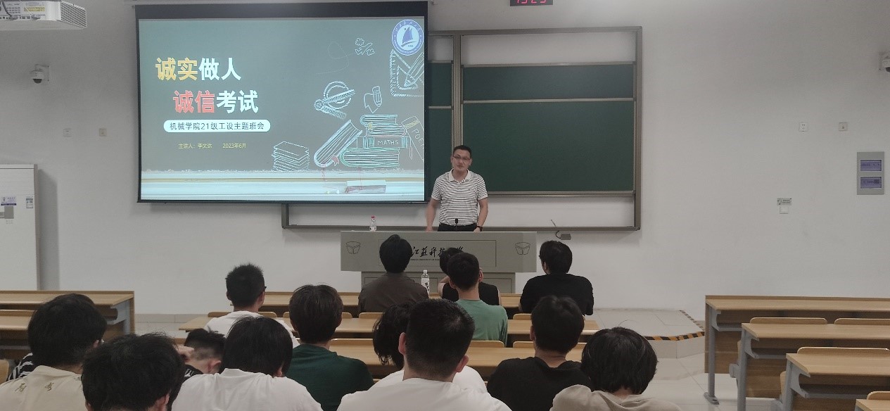 期末考试临近,为提高学生的诚信考试意识,木瓜视频 辅导员李文达为2021级工业设计专业的同学们,于6月5日,在明德楼102教室组织开展了一次“诚实做人·诚信考试”的主题班会,21级工业设计专业全体学生参加。