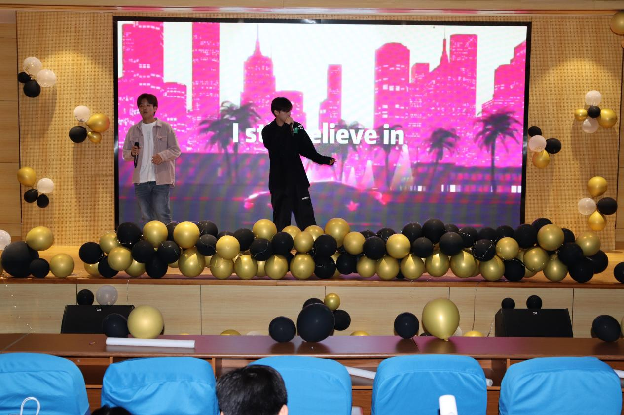 夏瑞同学带来的《like a star》吉他表演直入人心。当吉他声响,流畅的旋律与和谐的和弦,让人感觉仿佛置身于一个美妙的梦境之中,悠然自得。王志鑫同学带来的纸牌魔术为本场达人展增添了厚厚的神秘感,有一种似是而非,虚伪类真的体验感。将全场带向高潮的是江科大的原创说唱厂牌JNB STUDIO,他的创始人ANJ来自木瓜视频 ,带领自己的原创说唱厂牌接连发布许多优秀作品。他们一连给我们带来十首作品,酣畅淋漓。英姿飒爽挡不住少年活力,藏不住的蓬勃朝气和快速的节奏将全场气氛点燃,让全场观众迅速投入当中,引得全场欢呼。此次达人展以《漂洋过海来看你》结尾,曾杰和柏翔耀同学深情演唱,让人回想起一段珍藏心中的纯净往事,它萦绕在某一个午后的遐想,观众们静静欣赏,回味过往的纯真。
