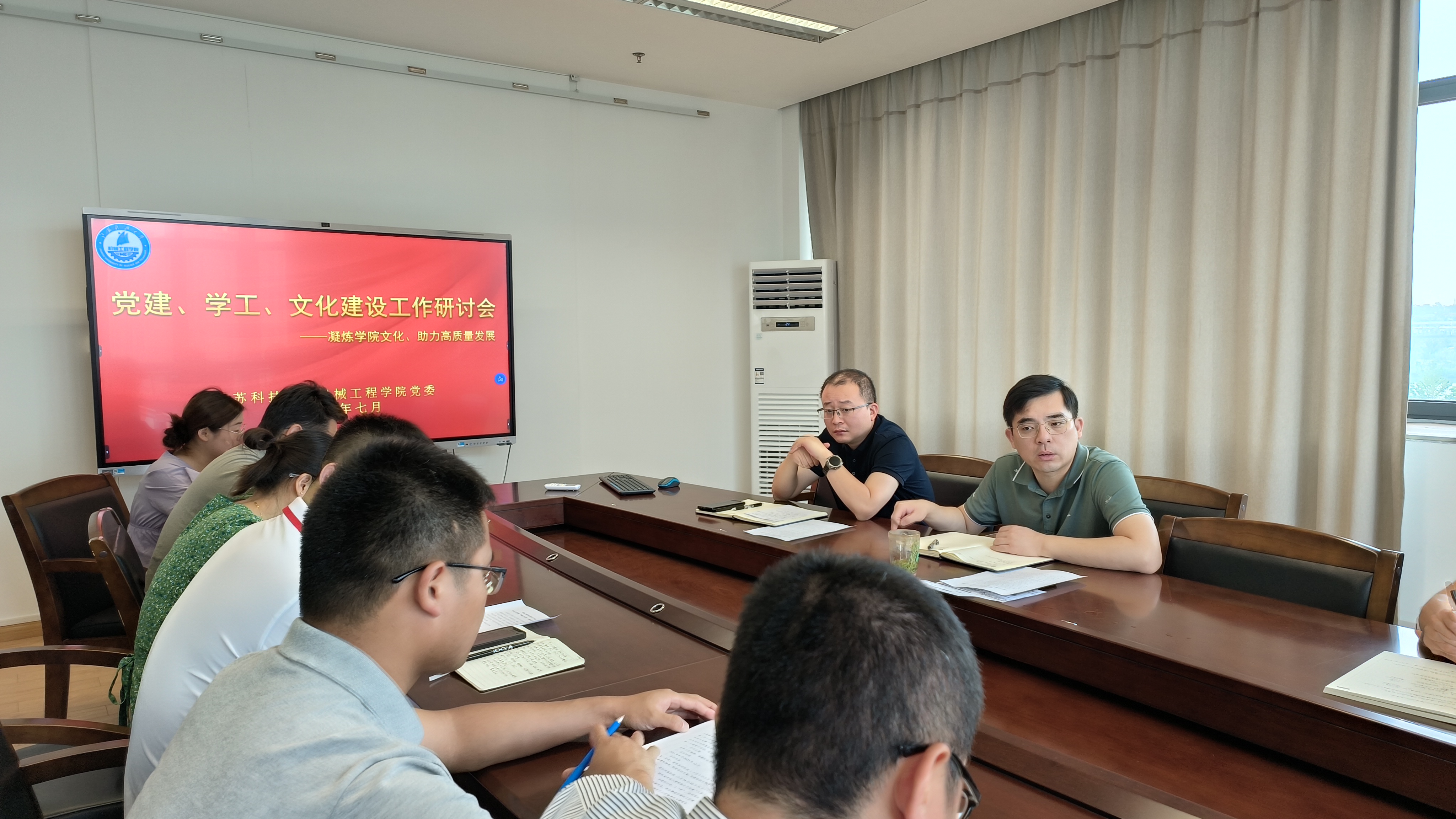 7月7日上午,机械学院召开党建及文化建设研讨会,院党委书记翟纯纯、副书记谭海波、全体党支部书记和辅导员参加了会议。会议由党委书记翟纯纯主持。