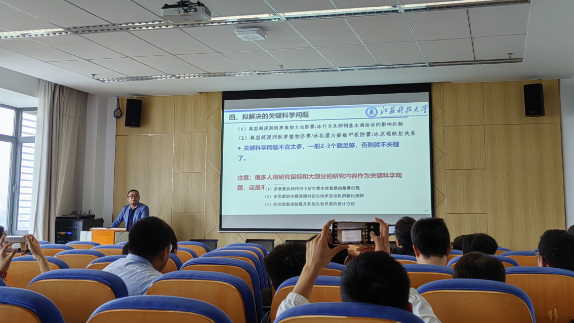 启动会上,胥国祥、冯晓明分享了个人申报国家自然科学基金的心得体会。胥国祥从评审专家的角度,讲解了基金选题、撰写规范及注意事项,详细分析了基础理论问题与工程问题的不同,特别强调选题时注意研究方向的选择。冯晓明结合个人青年基金与面上基金申报,重点介绍了基金选题、立项依据、研究内容、关键科学问题及创新性的关联与不同,强调基金撰写应“有限目标、抓住关键、重点突破、力求创新”。
