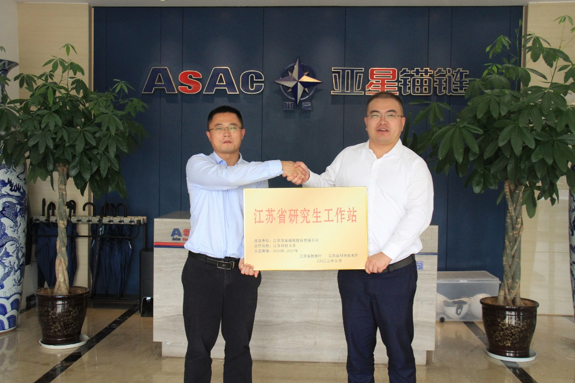 为发挥科技优势,强化人才培养,服务产业发展,2023年月10月9日上午,木瓜视频 副院长(主持工作)张建带队赴江苏亚星锚链股份有限公司调研,并与公司董事长陶兴共同为“江苏省研究生工作站”揭牌。
