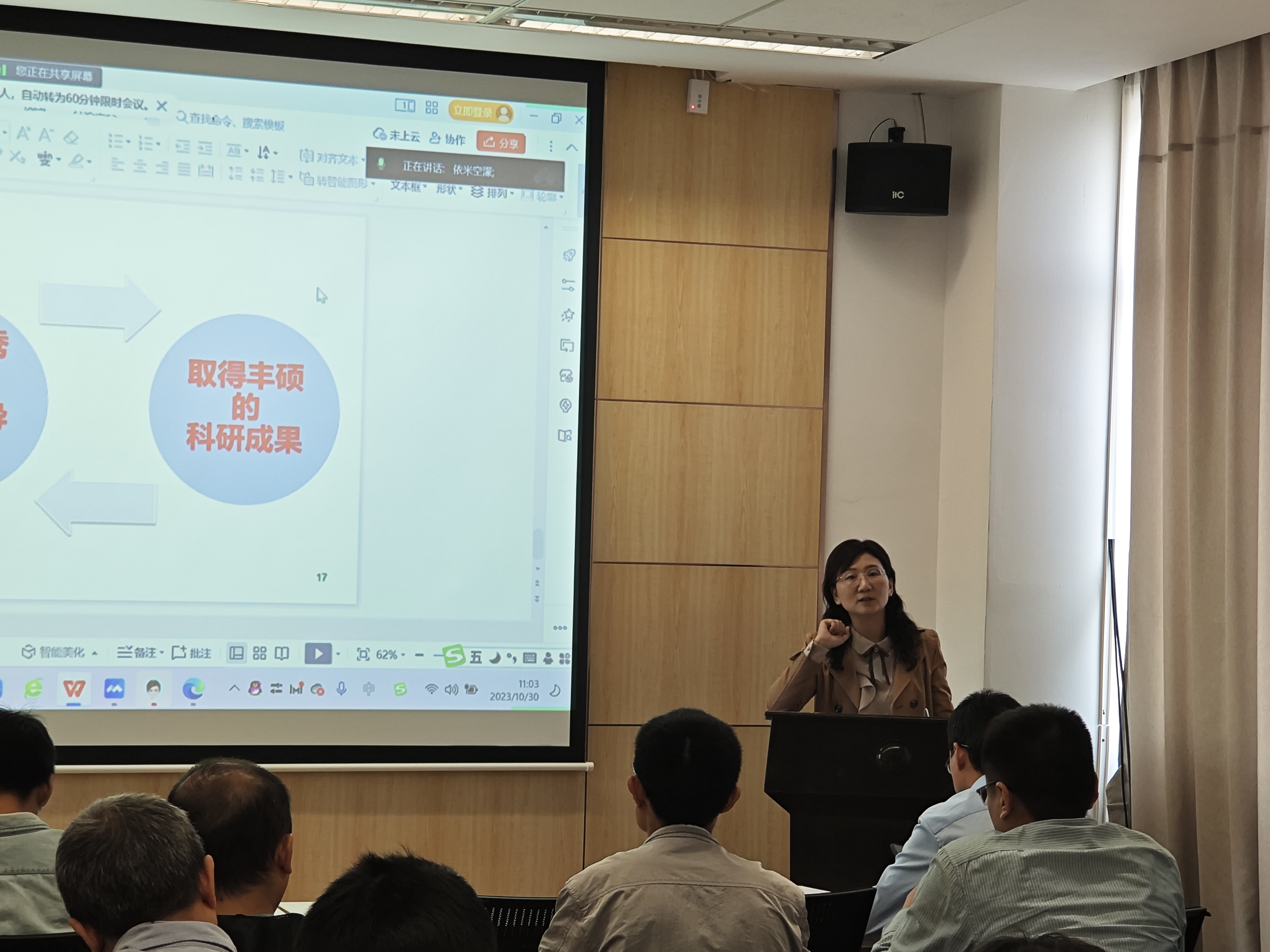 周元凯老师结合实际案例分享了自己指导研究生的经验:第一,提振学生信心,发挥学生主观能动性。关心学生,倾听学生心声,放手让学生做。第二,打造拼搏上进、合作共赢的学术氛围。鼓励学生走出去,参加学术会议,感受学术氛围,树立学术标杆。