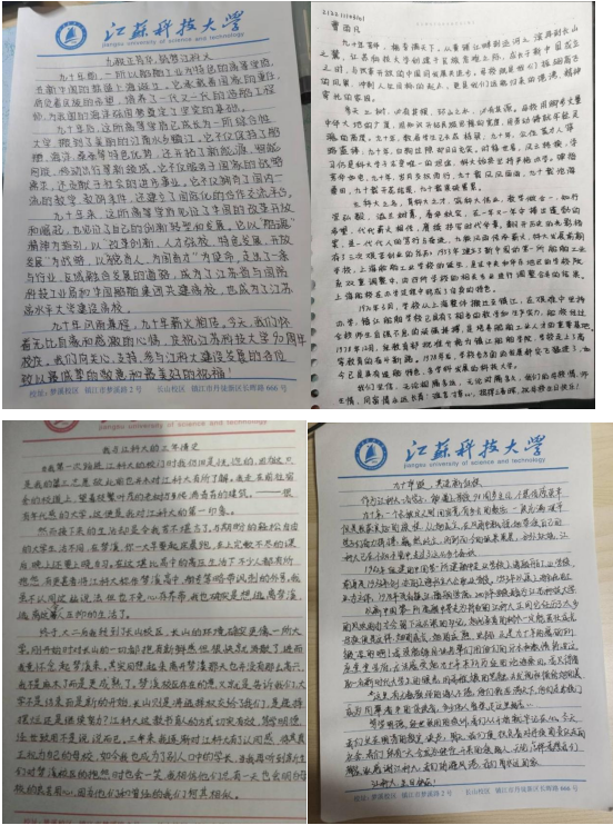 “重温校史,征文活动”参加学生通过手写最美情话用以祝福母校。书写是最质朴的热爱方式,用笔记录难忘之事,更加深了同学们活动体验感,展现了江科大学子朝气蓬勃,扬帆致远的精神。