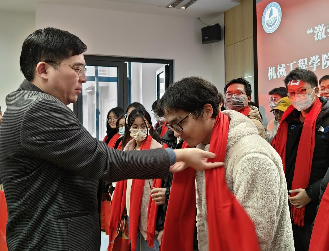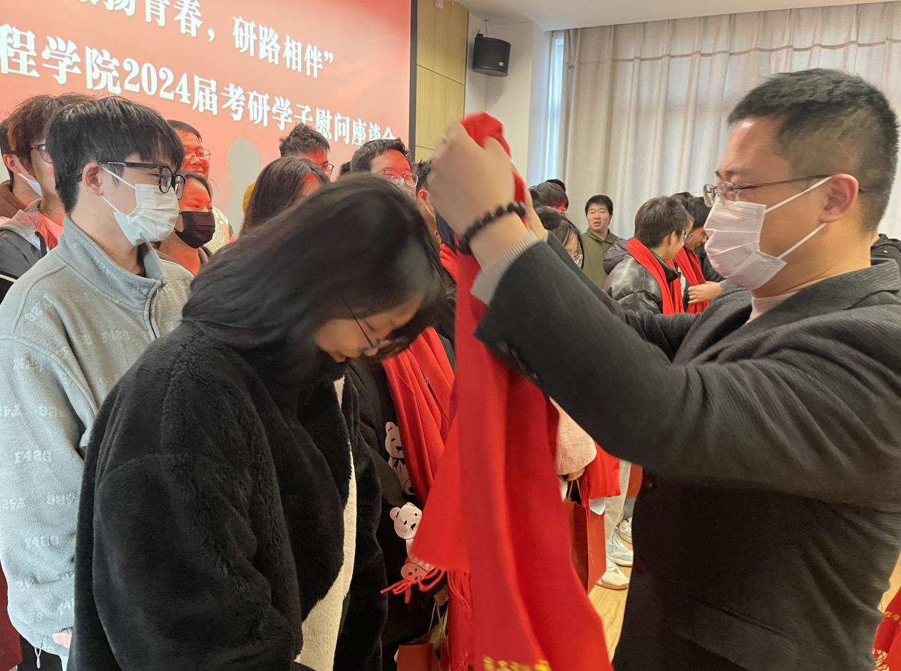 会后,各位领导为考研学子佩戴红围巾,寓意鸿运当头,并合影留念。本次考研慰问活动体现了学院对考研工作的重视。希望考研学子能够不负理想,一战成“硕”!