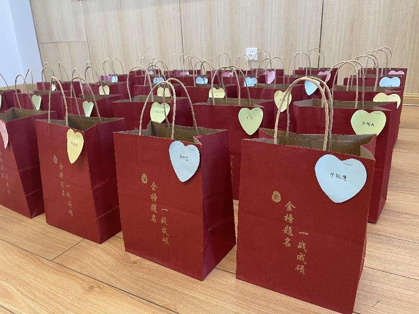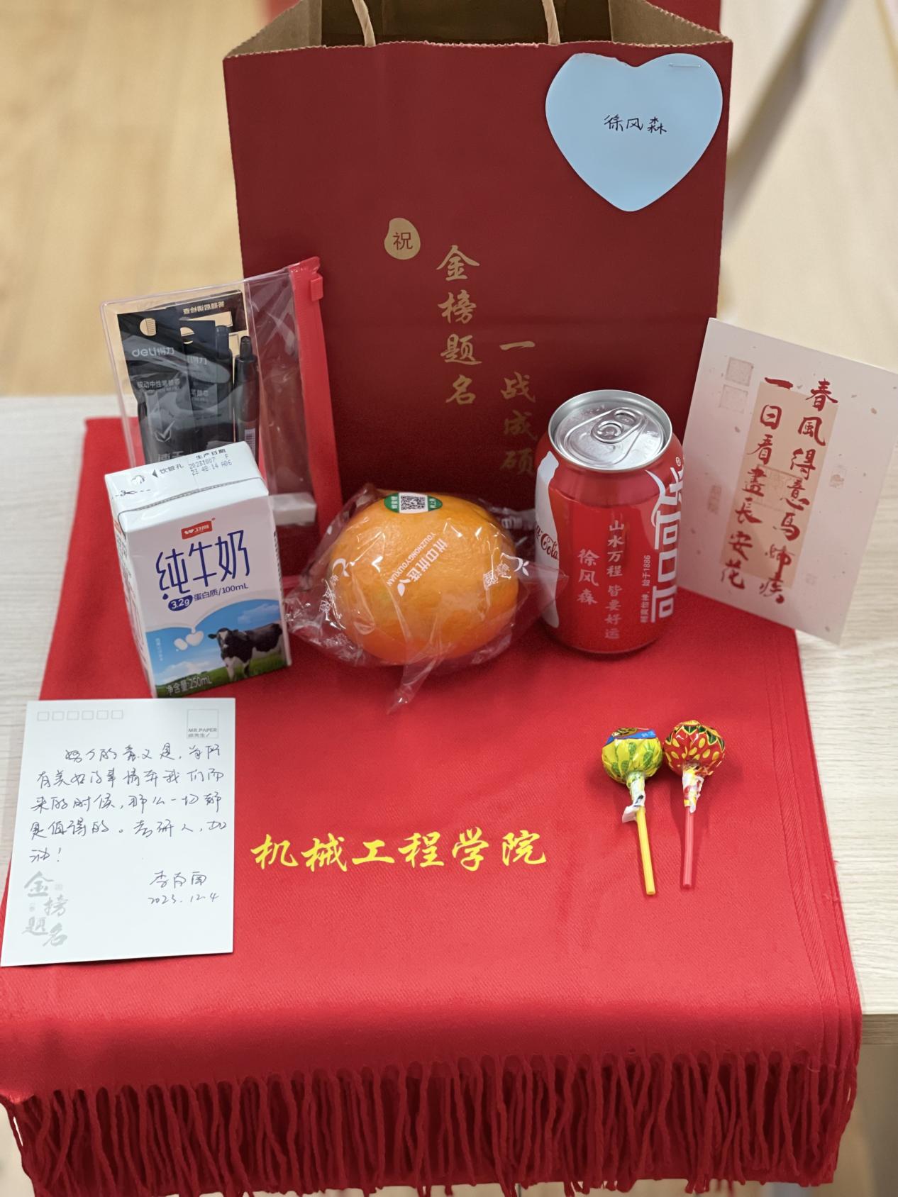 学院为考研的同学们精心准备了考研加油礼包。包括考试文具、考研署名款可乐,还有“橙”功上岸、“牛”气冲天、“棒”上有名、师生祝福贺卡等。