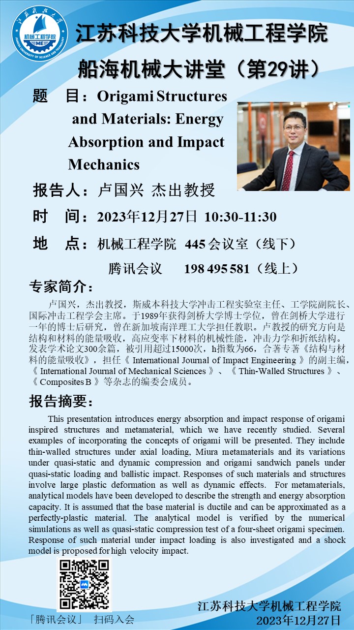 学术报告——Origami Structures and Materials:Energy Absorption and Impact Mechanics