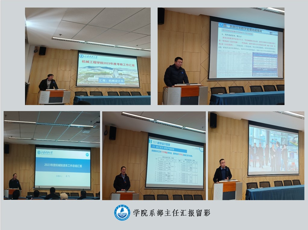 机械制造工程系、机械电子工程系、机械设计系、智能制造工程系和工业设计系分别围绕系部年度工作计划落实情况、对学院重点工作的贡献度、当前工作不足分析及改进措施等方面对年度系部工作开展情况进行了全面总结。机械制造工程系主任晏飞展示了教学资源建设、青年教师培养等方面所取得的成效;机械电子工程系主任王佳介绍了国家一流专业建设、工程教育专业认证、人才培养等工作的开展情况;机械设计系主任刘志强分享了系部教学研讨等常态化方面的做法和经验体会;智能制造工程系主任刘金锋汇报了专业建设规划、教师教学能力建设等方面的思考;工业设计系主任刘李明介绍了实验室建设、对外合作交流等方面的做法与成效。