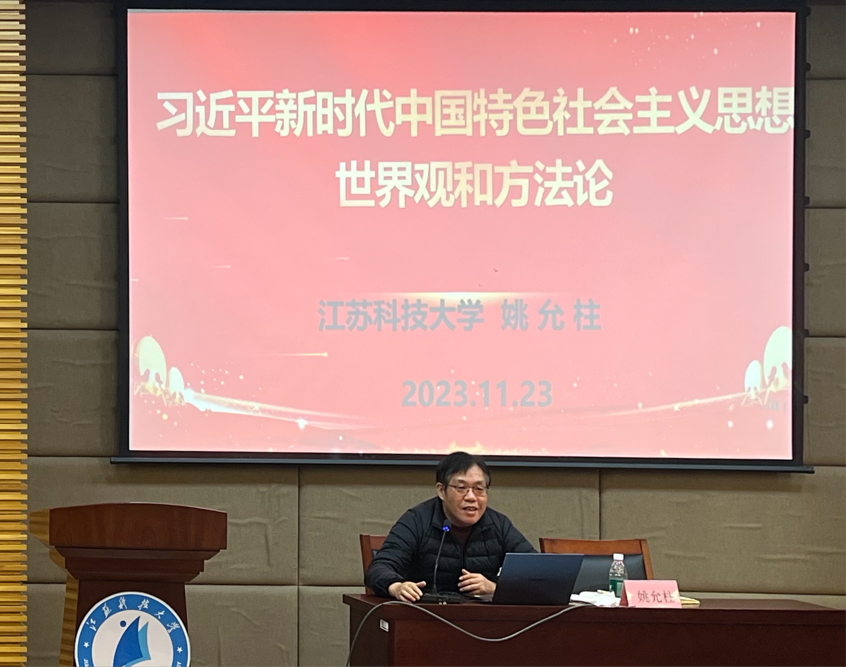 姚教授以深入浅出的方式,对习近平新时代中国特色社会主义思想世界观与方法论进行了详细的讲解。他巧妙地运用通俗易懂的例子,通过对党的二十大报告中“六个坚持”的详细评析帮助同学们更好的理解何为世界观、何为方法论,讲座内容条理清晰、层层递进、过渡自然。姚教授通过对巴以冲突国际形势为切入点,引出《论犹太人问题》这一著作,并从中谈到了马克思主义与中国实际相结合。随后,以独特的视角深入剖析习近平新时代中国特色社会主义思想世界观与方法论,由点到面地讲解其科学内涵,深刻地解答了习近平新时代中国特色社会主义思想的内涵与重要性。