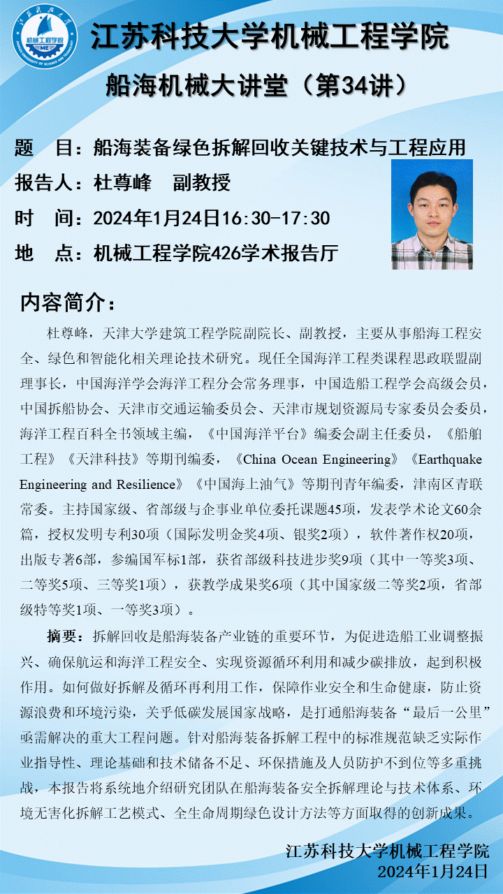 学术报告——船海装备绿色拆解回收关键技术与工程应用