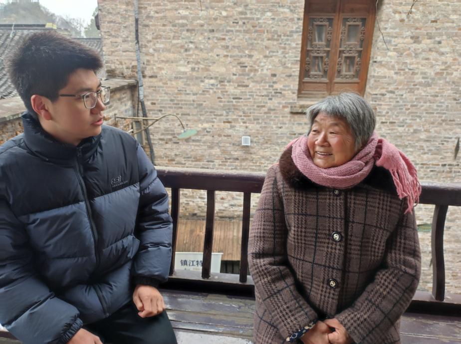 金宇成同学(左一)和奶奶聊天 拍摄:刘士鑫