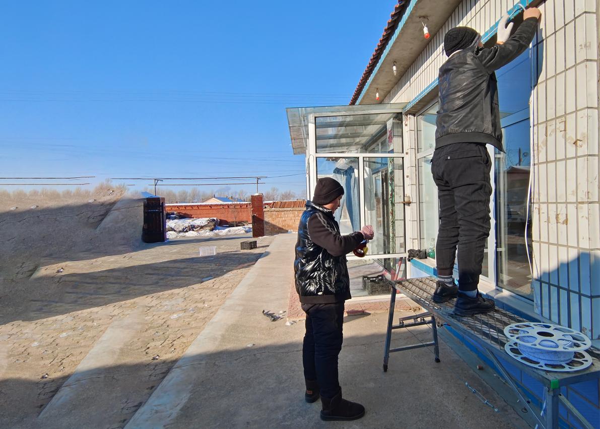 2月1日,小组成员李爽帮助当地居委会张贴过年需要布置的彩灯。上午8点半,他在居委会工作人员的安排下,与另一位志愿者负责总长度为15米的彩灯布置工作,在对墙面进行简单处理后开始进行工作。他认为,新时代的乡村建设工作应首先从基层做起,临近年关,布置好当地居委会场地的整洁与自然就显得极为关键。