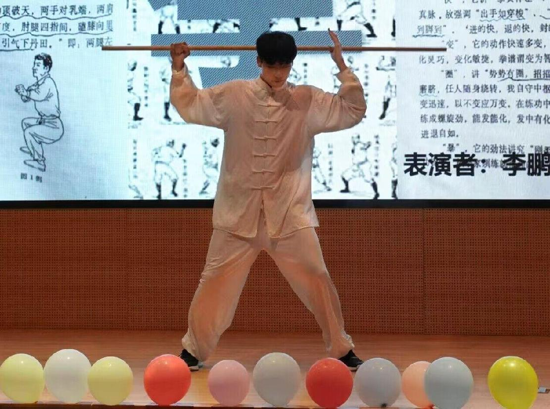 此次达人展在江科大KDS曳步舞团的表演曲目《shuffle》中拉开帷幕,曳步舞团的同学们用极具动感和张力的舞蹈为大家带来了一场视觉盛宴。李鹏羽同学为大家带来的拳术与棍术用坚定有力的武术动作展现了中华文化的博大精深,让同学们深切感受到了武术的魅力。而后,万欣妍同学为大家带来的歌曲《如果爱忘了》直接将现场的氛围推向第一个小高潮。