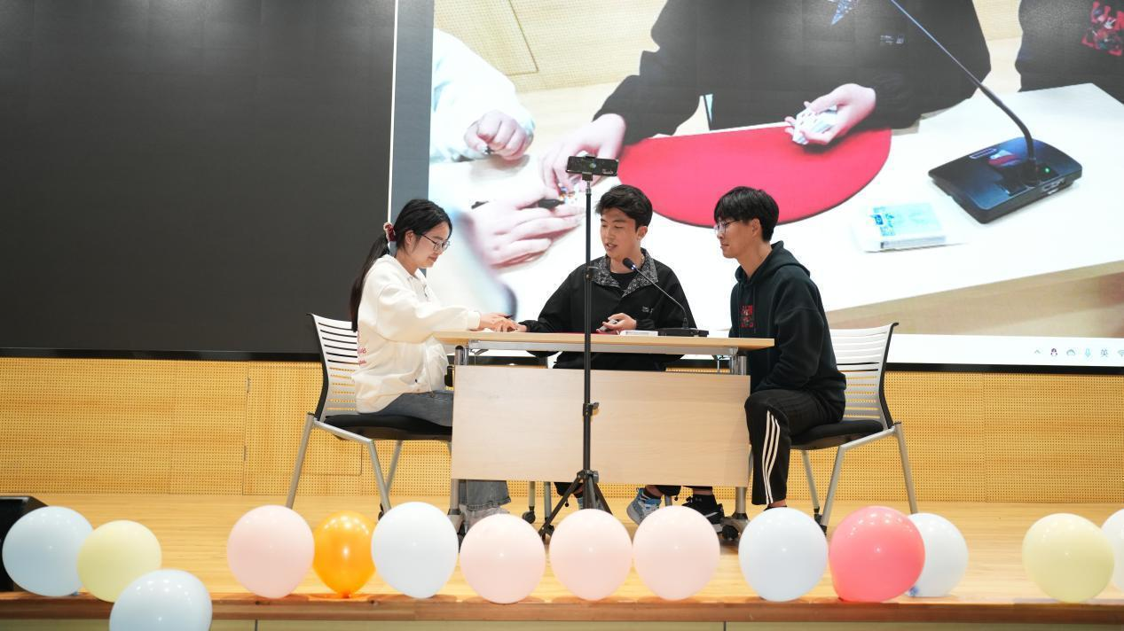 在深情动人的歌曲结束后,是由王欣宁同学为大家带来的贯口表演《十八愁》,他用流畅、飞速的语言技巧为大家展示了贯口艺术的魅力所在,使大家赞叹不已。将全场带向最高潮的是江科大的原创说唱厂牌JNB STUDID,他的创始人带领自己的说唱厂牌在网易云音乐等平台接连发布许多优秀作品。在此次达人展中,他们用快速的节奏变换点燃现场,让全场的观众投入其中。王志鑫同学带来的纸牌魔术表演,让现场的同学们都置身于似是而非的环境中,欢乐的氛围在同学们的惊叹声中蔓延。本次活动还增加了互动抽奖环节,主持人随机选取观众抽取幸运号码,为在场观众带来惊喜,有效提高了达人展的趣味性。