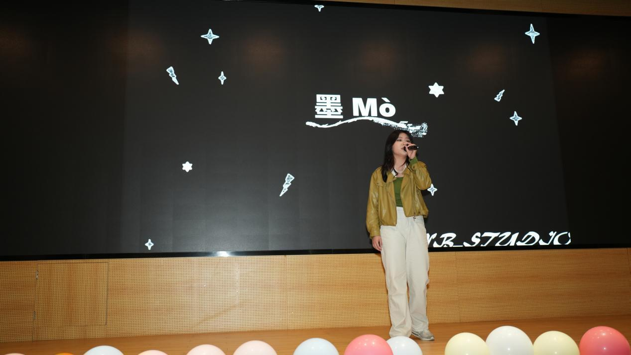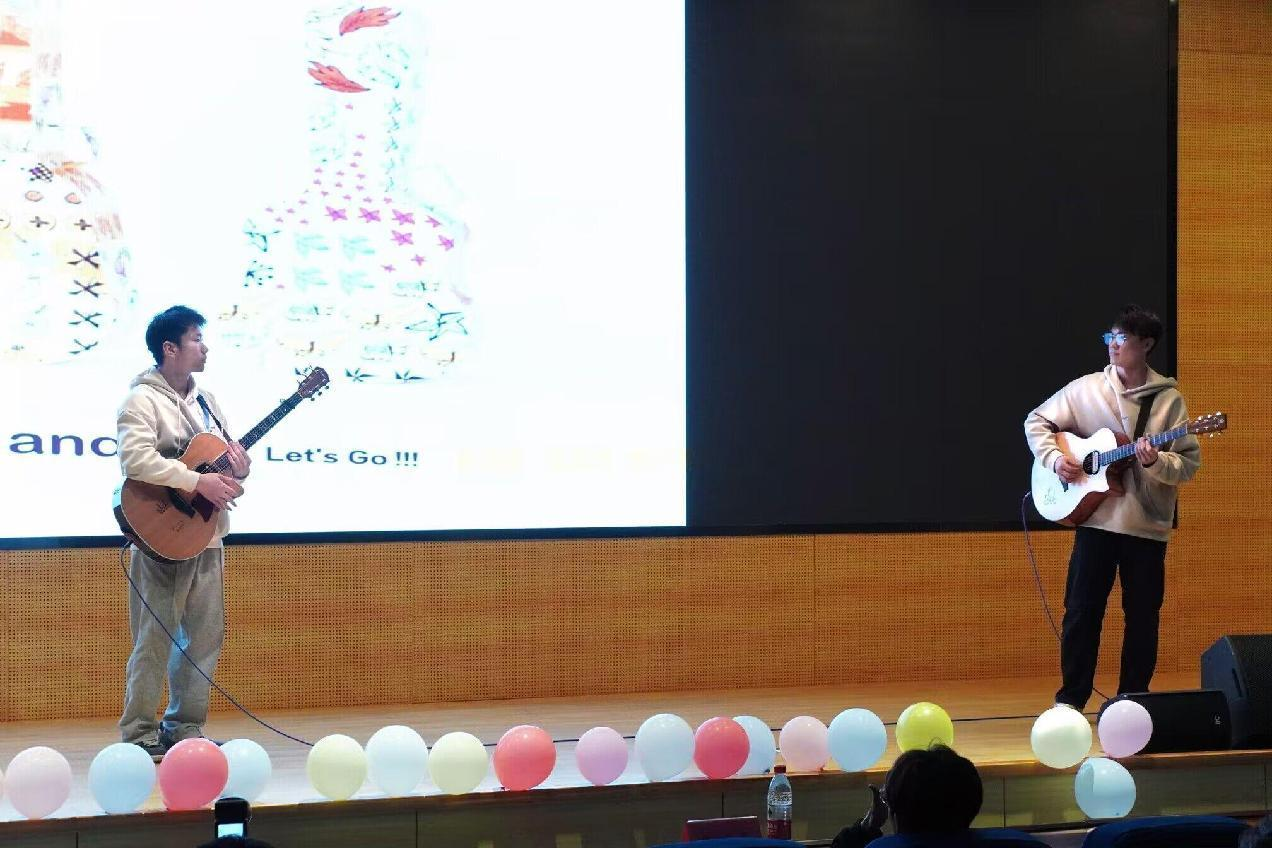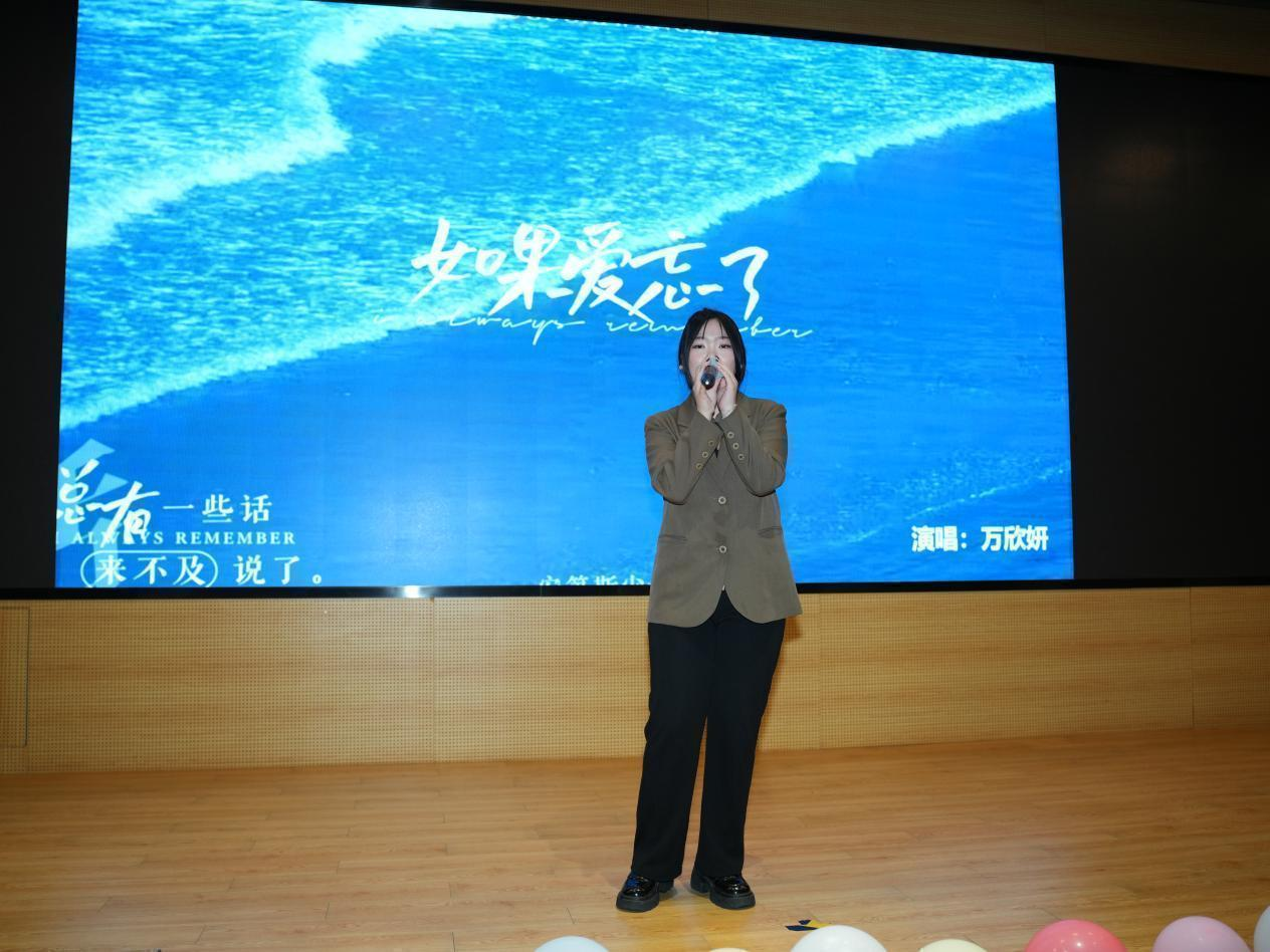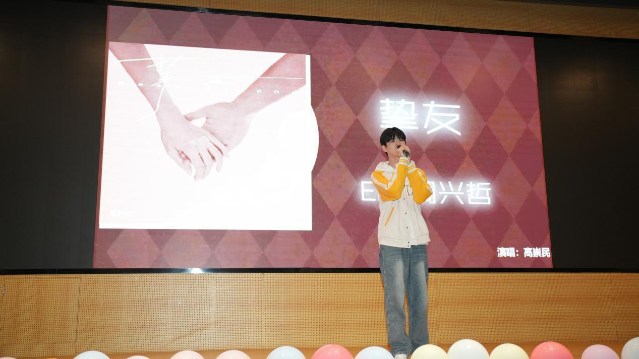 本次活动校园歌手高崇民的演唱曲目《挚友》中接近尾声。他的演唱将歌曲的情感表达得恰到好处,演唱结束后,他与万欣妍同学一起,带领全场一起合唱《忘记时间》,达人展也在优美的歌声中缓缓落下帷幕。