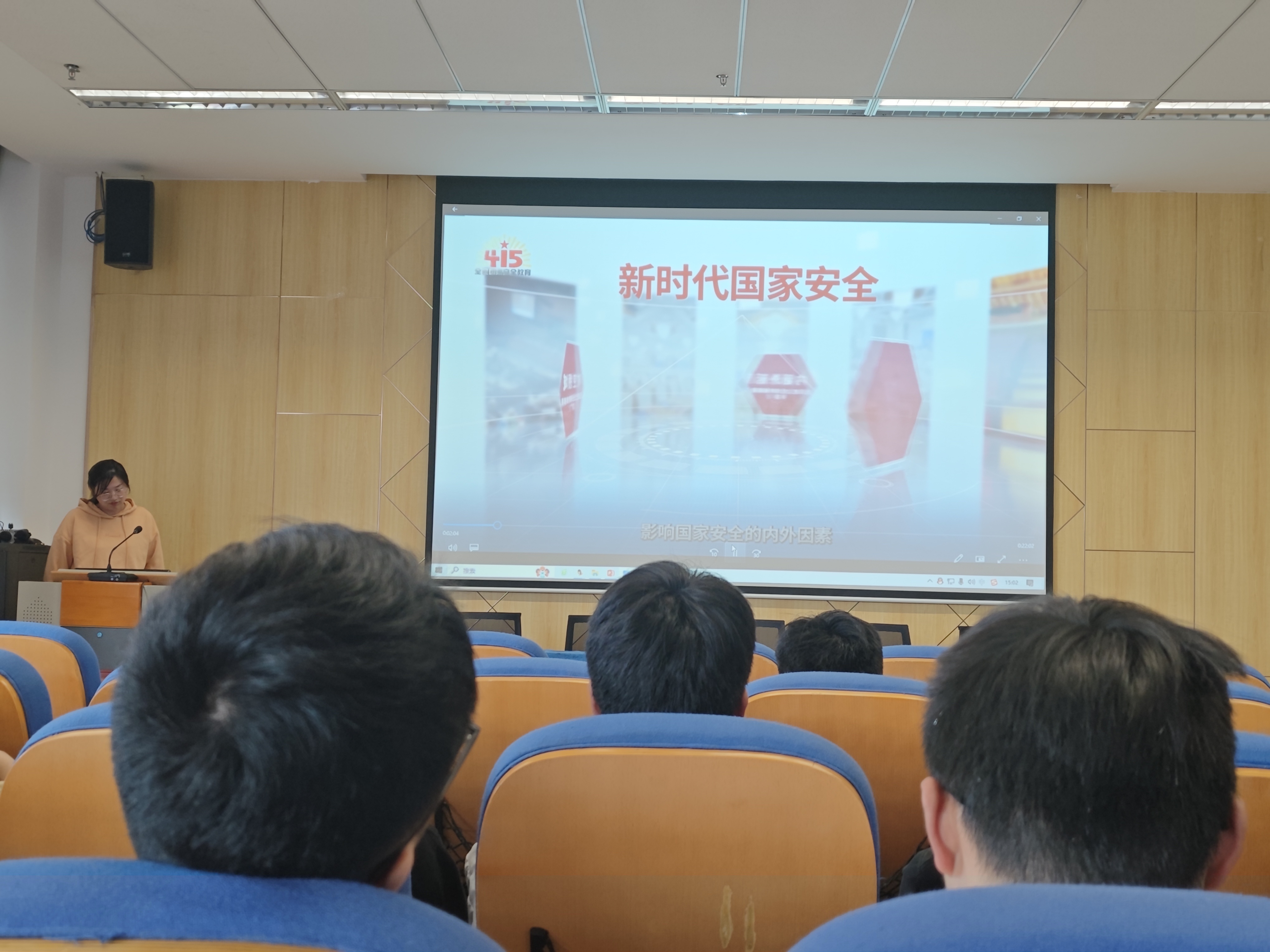 首先,研究生辅导员席娟对习近平总书记提出总体国家安全观的时代背景和总体国家安全观的内容进行了详细介绍,并带领大家集中学习了习近平总书记关于总体国家安全观的重要论述,深刻领会总体国家观的核心要义和精神实质。随后,所有同学一起观看了专题教育片《创新引领国安砺剑》,了解近十年来国家安全机关破获的十大重大间谍案件。