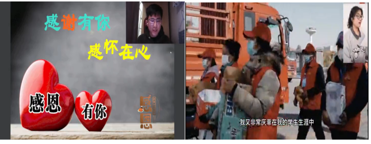 本次活动分为两个部分。活动一为线上活动,同学们通过分享有关感恩的名言警句、拍摄有关感恩的演讲视频。通过畅谈所见所闻、所思所想,抒发真实情感,引导学生将感恩意识内化于心,外化于行,努力做到回馈社会,回馈国家。