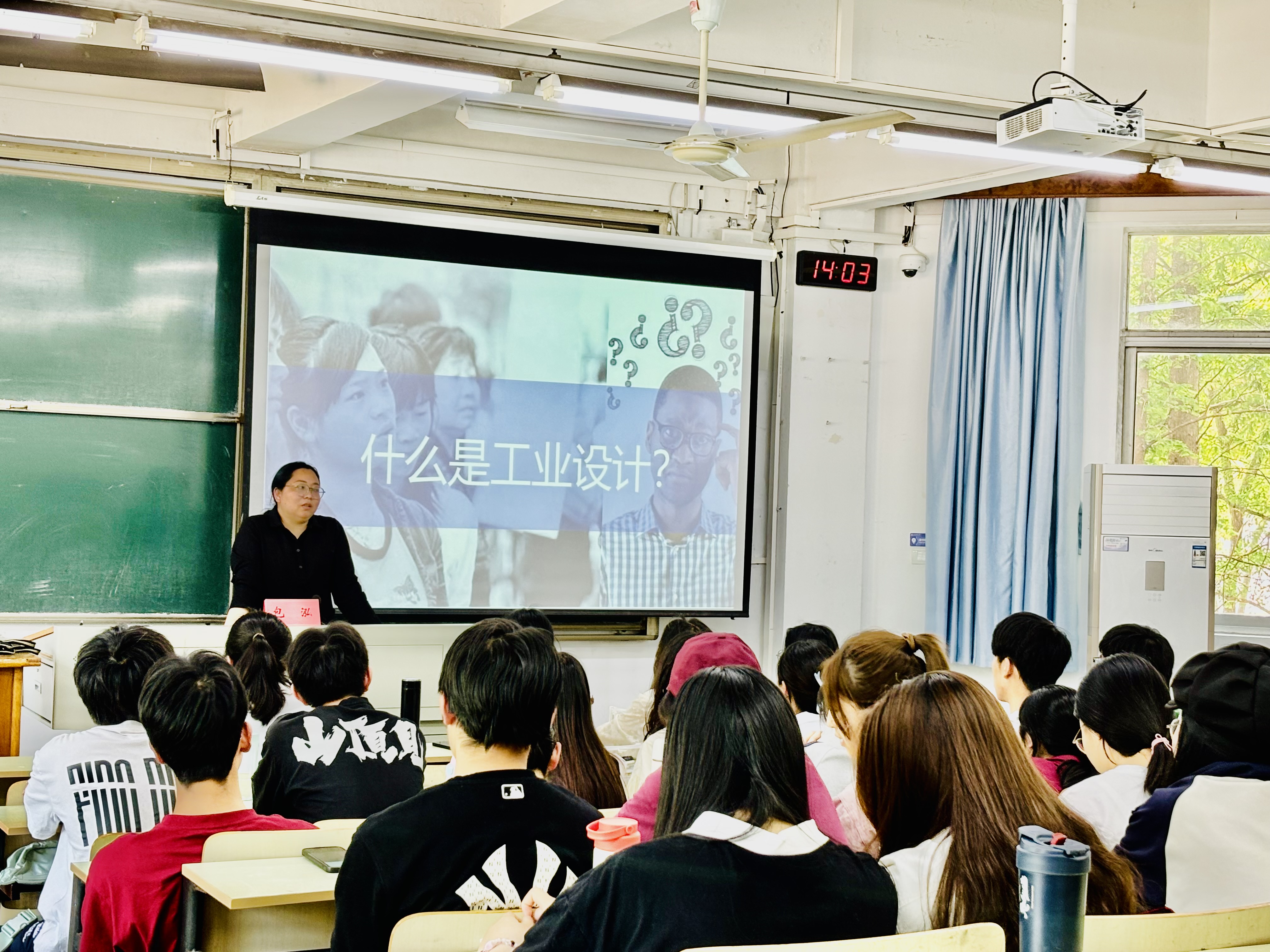 首先,包老师以“什么是工业设计?”为引,向同学们介绍了工业设计的基本概念。她指出,工业设计旨在引导创新、促进商业成功以及提供更好质量的生活,是一种涵盖工学、美学、经济学的跨学科专业。工业设计不仅要求学生掌握扎实的理论基础,还需要具备一定的实践能力和创新思维。在学习过程中,同学们将接触到工程图学、设计素描、产品效果图、人机工程学、设计心理学等课程,这些课程将帮助大家构建完整的知识体系,提升综合素质。之后包老师又结合行业发展趋势和市场需求谈到了“工业设计能干什么?”从大型交通工具如船舶、飞机,到日常生活中的水杯、家电等,都离不开工业设计的支持和推动。最后,包老师向同学们展示了高年级学生的优秀作品,希望能够对大一同学有所启迪和帮助。