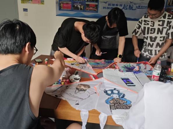 活动开始,心理委员高明首先向大家介绍了风筝的历史与意义,向同学们展示了各种各样的风筝作品,让同学们能够更好地了解风筝的艺术与内涵,同时亲身感受记忆里的非遗文化。同学们在“风筝创作”环节中,用简单的模具和丰富的染料,将自己的创意和情感融入风筝制作中。他们亲手制作独一无二的风筝作品,通过色彩的碰撞与融合,表达内心的情感。李南南老师引导大家分享创作背后的故事,帮助同学们在艺术创作中释放压力,增强自我认知。在“非遗文化分享”环节,大家互相欣赏,交流心得,共同感受非遗文化的魅力。这些富有创意的作品,不仅展现了同学们的才华,也传递了对传统文化的敬意。最后,同学们在长山校区西操场放飞风筝,放飞心情,收获快乐的一天。