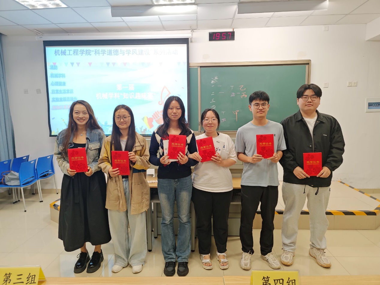 经过激烈角逐,本次比赛前三甲小组脱颖而出。在台下选手和观众的热烈掌声中获奖选手们满怀喜悦依次登台领奖,并表示本次趣味知识竞赛不仅对本专业知识进行了查缺补漏同时也扩宽了知识面感受到了知识学习也可以变得有趣味,更重要的是题库中涉及消防和实验室操作规范的题目对接下来进入实验室科研的自己简直是一次让人难忘的学习机会。