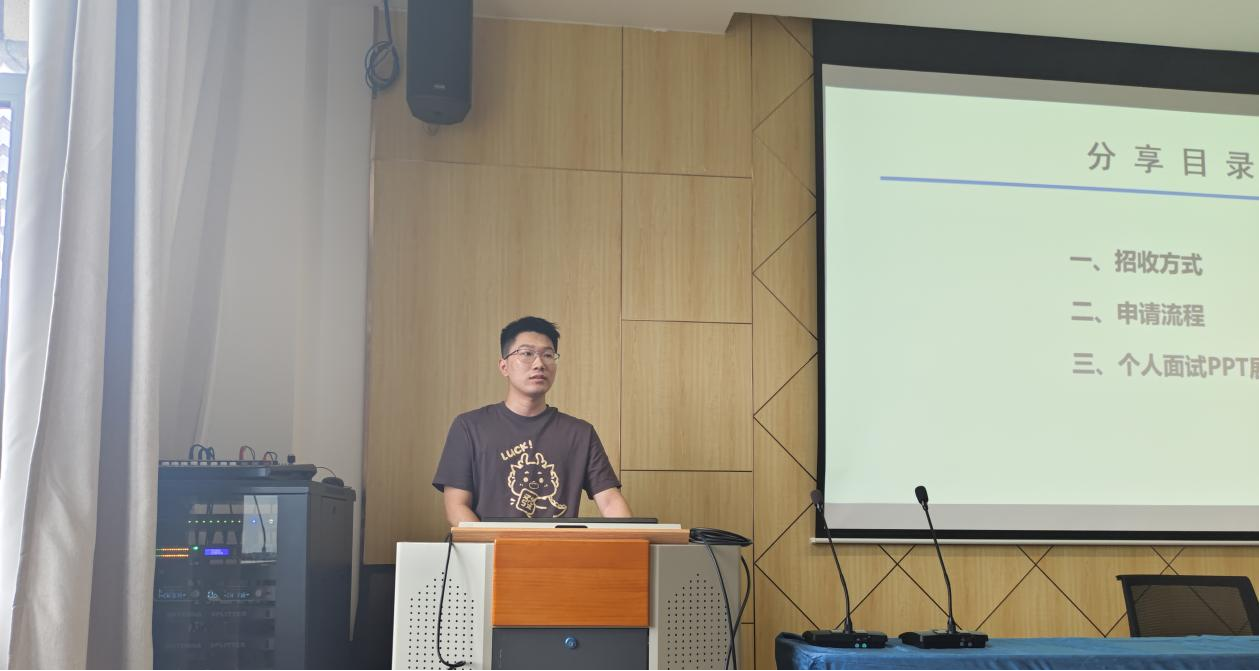 会议伊始,席娟老师向大家介绍本次分享会的基本内容和考博的基本流程和相关信息,并向大家介绍进行分享的师兄的科研事迹:21级研究生彭志诚成功考入北京理工大学,滕赟成功考入大连理工大学,董宝江成功考入西南交通大学。