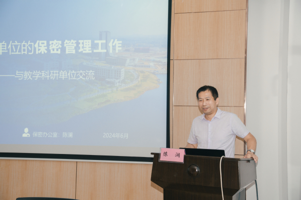 陈澜主任从保密法、国家安全法等法律法规的宏观视角出发,深入浅出地讲解了涉密科研项目管理的基本流程,明确了指导老师在参与涉密科研项目时应遵循的规范与注意事项。针对涉密项目参研过程中可能出现的风险点和薄弱环节,陈澜主任进行了细致入微的解读,为与会人员提供了宝贵的指导建议。