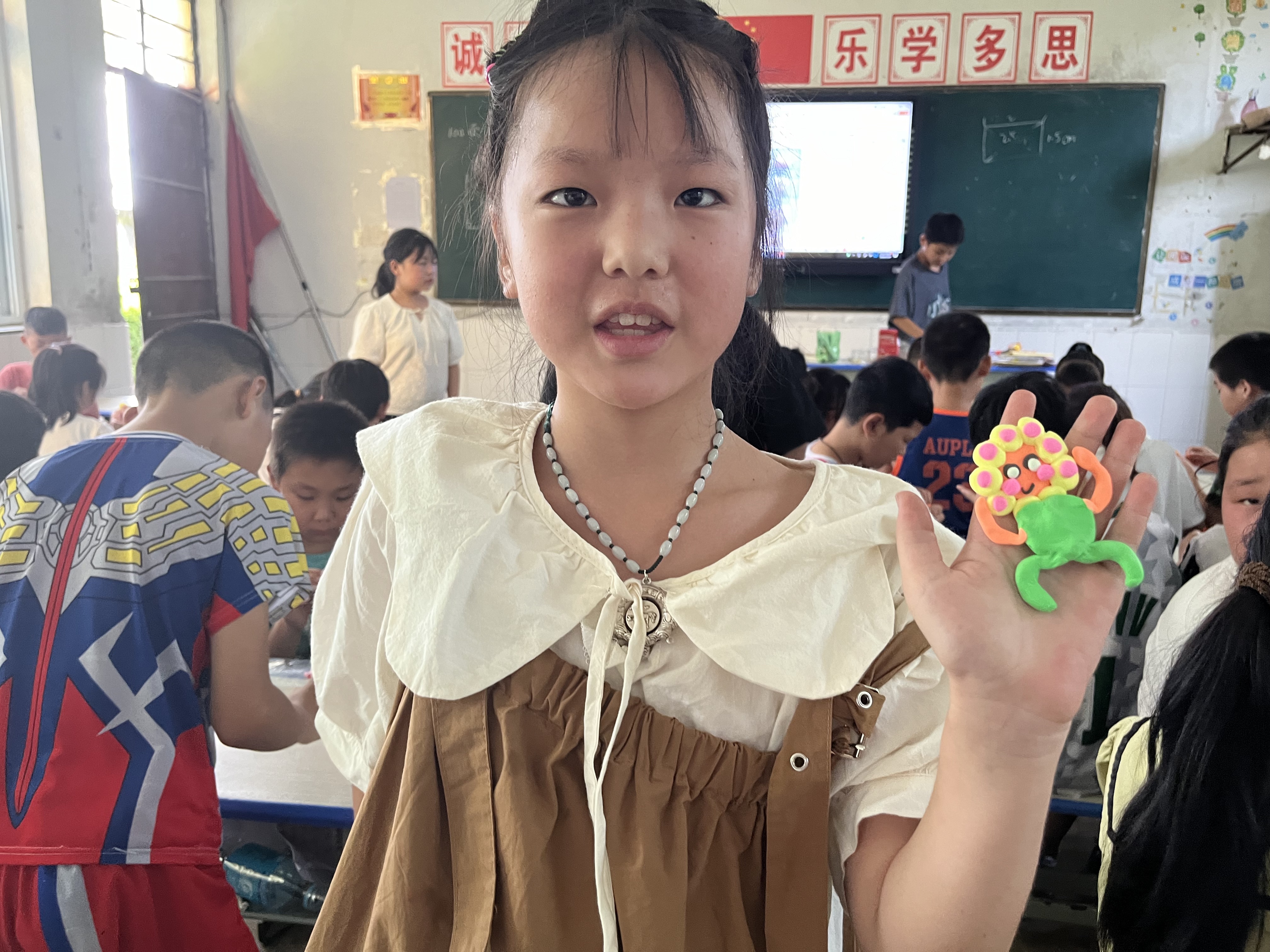 活动中,孩子们用稚嫩的双手,将一团团黏土幻化成了各种各样充满创意的作品。有的孩子制做出了可爱的小动物,仿佛在默默诉说着内心对温暖陪伴的渴盼;有的孩子塑造出了美丽的家园,那承载着他们心中对美好生活的憧憬;有个孩子做了一个超人,他告诉老师,因为自己不记得爸爸妈妈的模样,奶奶说超人是爸爸送来保护她的。此次黏土活动不仅为留守儿童带来了欢乐,提升了他们的动手能力与创作能力,更重要的是,让他们在充满趣味的陪伴中深切感受到了爱。