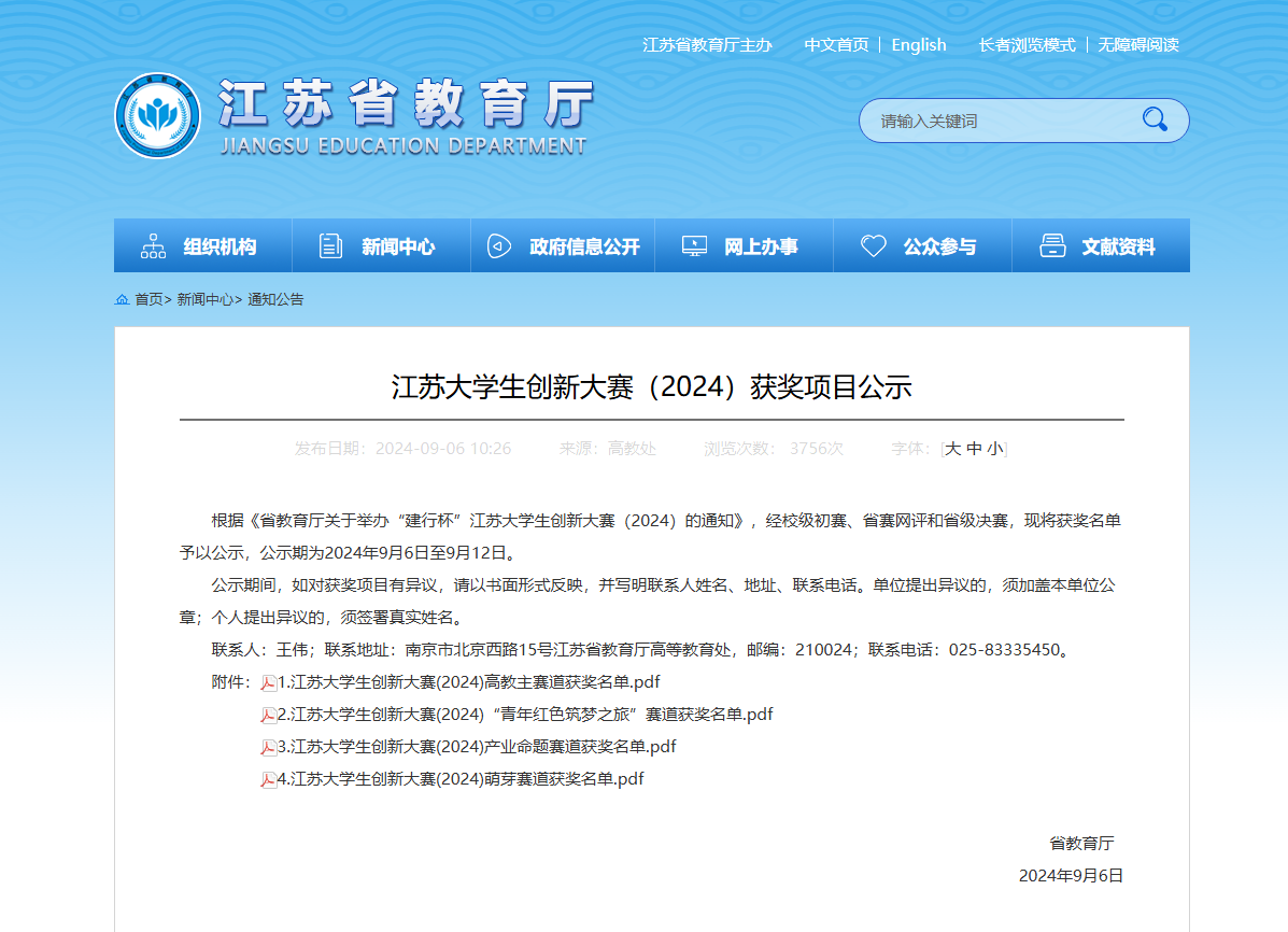 9月6日,江苏省教育厅公布《江苏大学生创新大赛(2024)获奖项目》,机械学院3个项目参加竞赛,经过层层角逐,共获省赛一等奖3项,助力学校获奖数位列全省第二位,学校获“优秀组织奖”。经过校级排位赛、省级训练营、省级排位赛的比拼,最终,学院3个项目全部推荐至国赛。