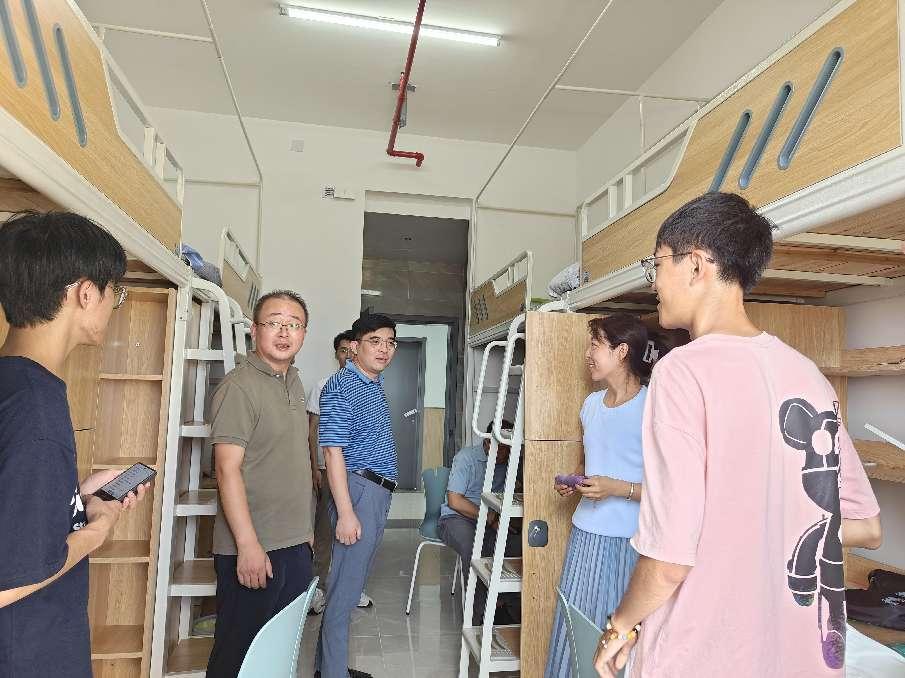 上午,领导们逐一走进新生宿舍。在宿舍内,翟纯纯书记和谭海波副书记细心询问了新生们的入学报到手续办理情况,从报到流程的便捷性到宿舍设施的完善度,事无巨细,一一了解并听取反馈。翟书记特别强调了学院对于新生适应新环境的重视,他强调:“学院深知初来乍到的你们或许会有诸多不适应,但请放心,学院就是你们的坚强后盾。无论是学习上的困惑还是生活中的难题,我们都将全力以赴,为你们提供最坚实的支持。”
