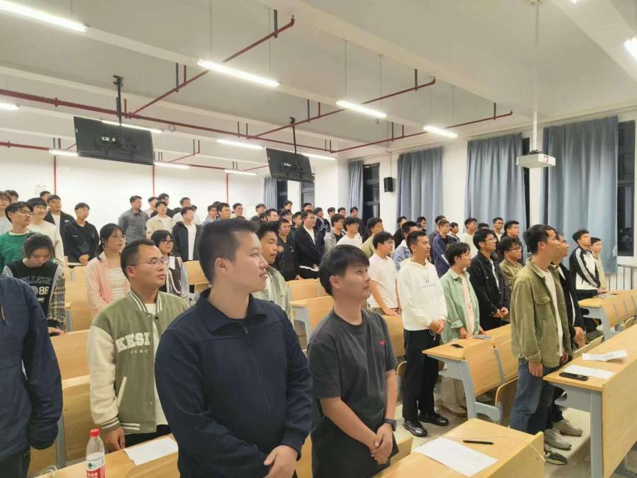 班主任王叶松和陈曙光老师发表了精彩讲话。老师们从祖国的发展历程、当前的国际形势以及同学们肩负的历史使命等方面进行了深入阐述。他们强调,祖国的繁荣昌盛是无数先辈们用汗水和生命换来的,作为新时代的大学生,同学们应当珍惜这来之不易的和平与发展,努力学习专业知识,提高自身综合素质,为祖国的建设贡献自己的力量。老师们的话语深刻而有力,让同学们更加深刻地认识到了祖国的伟大和自己肩负的责任。