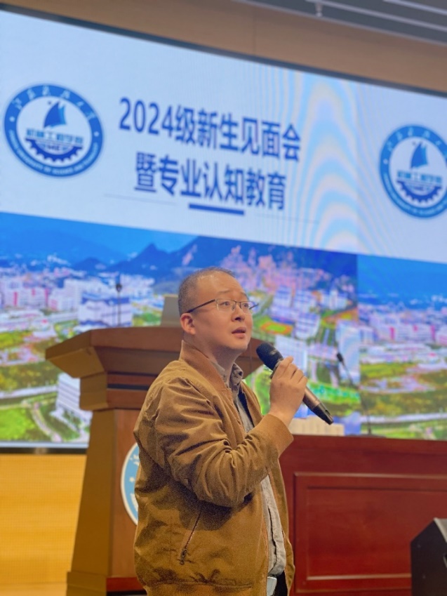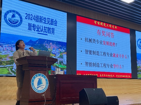 为帮助2024级新生了解学院及所学专业概况、及早明确学习目标、规划学业生涯,尽早转型,10月31日,木瓜视频 在图书馆B105报告厅举办了新生转型教育第二讲---2024级新生见面会暨专业认知教育大会。木瓜视频 党委副书记谭海波、机械制造及其自动化专业负责人何强、机械电子工程专业负责人李冲、工业设计专业负责人包泓、智能制造工程专业负责人孙志莹、2024级新生辅导员李福来、蒋达、王洁,2024级本科全体新生参加大会。会议由辅导员王洁主持。