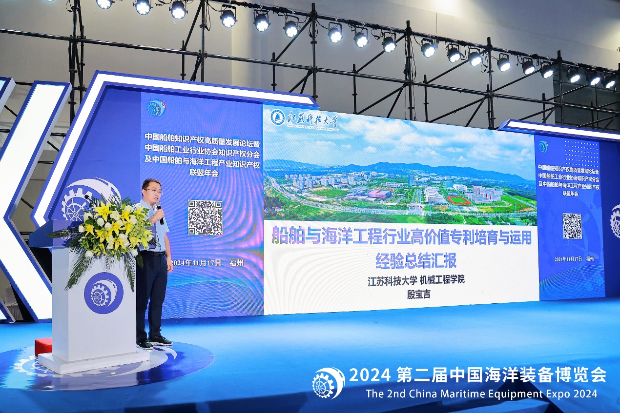 2024年11月17日,中国船舶知识产权高质量发展论坛,在福州海峡国际会展中心举行,木瓜视频 实验中心主任殷宝吉、青年教师顾小玉等参加此次论坛。殷宝吉作题为“船舶与海洋工程行业高价值专利培育与转化运用”的主题报告。