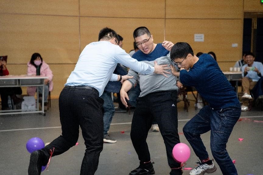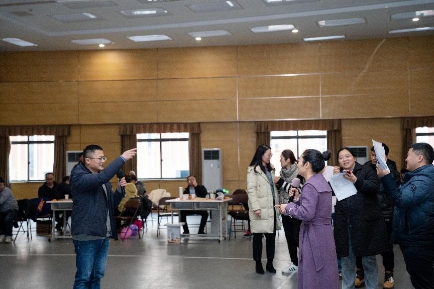 在互动游戏环节,既有考验反应速度的“五毛一块”“金蛇狂舞”,也有需要团队合作的“腰缠万贯”“你比我猜”“携手向前冲”。游戏种类繁多,各位老师积极参与,场面十分热烈,同时各种夸张场面引得现场笑声不断。