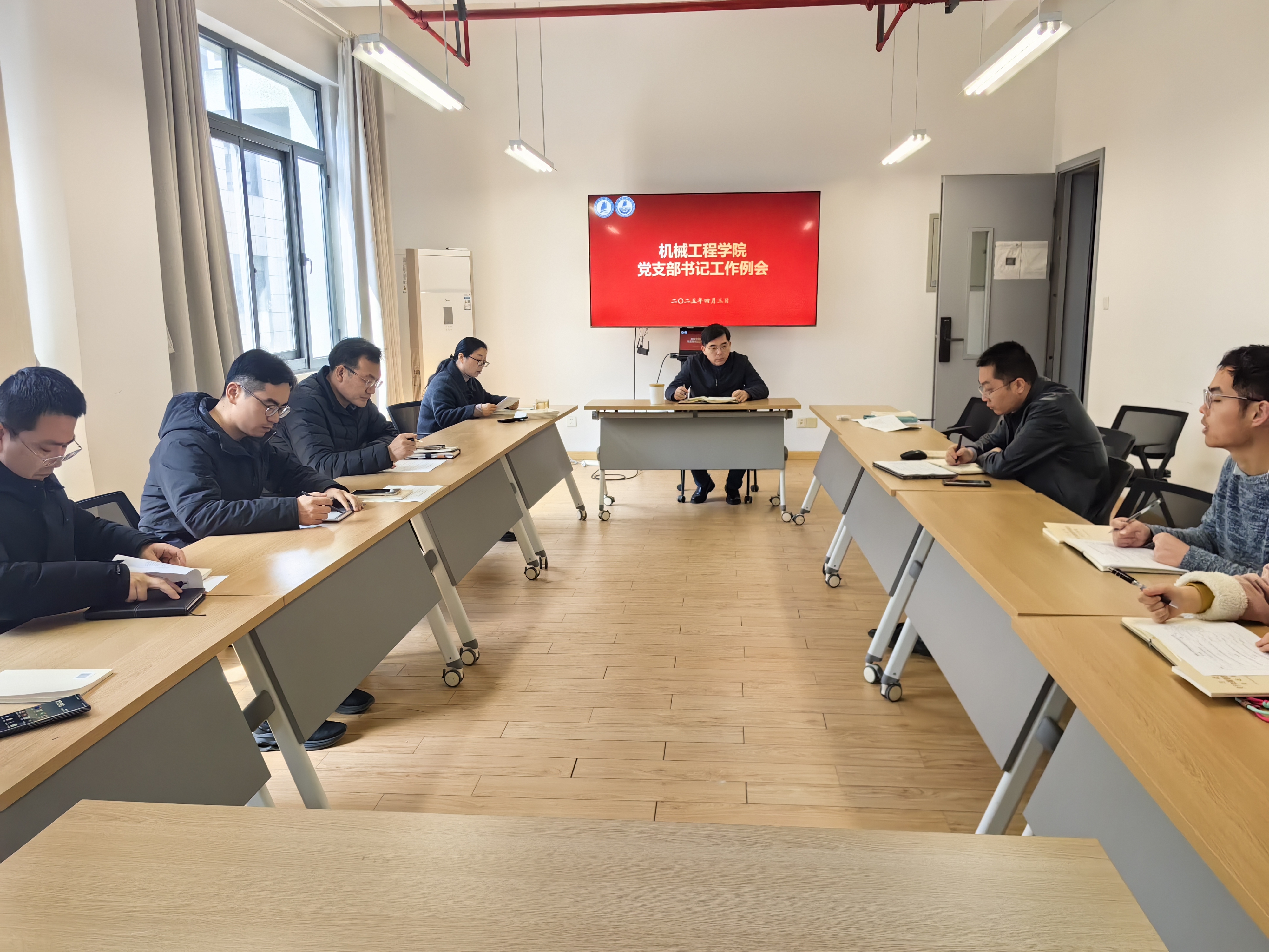 4月3日,木瓜视频 党委召开党支部书记工作例会,传达学校党务工作会议精神,进一步明确学院党建年度工作重点任务,院党委书记翟纯纯、组织员薛瑜和全体党支部书记参加会议。