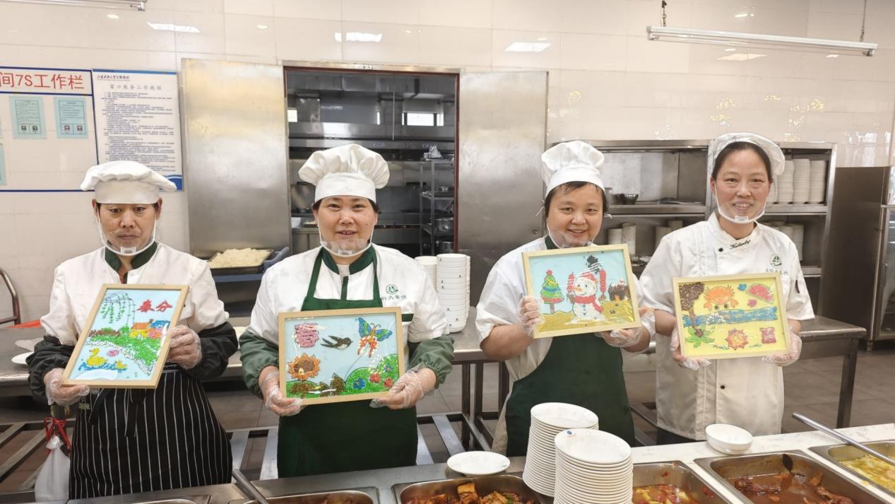 活动的最后,志愿者将一幅幅同学们亲手制作的粮食画收集在一起,然后前往食堂,把粮食画送给食堂做饭的叔叔阿姨们,以表示对他们平时辛勤付出的感谢。叔叔阿姨们在收到这意外的一份礼物时,脸上都不由得露出灿烂的笑容。此时,后厨里的饭菜也正好出锅,醇厚的大米香味混合着其他各式各样的菜肴的气味扑面而来,使得每一幅粮食画看起来更为生动,活动的意义也在此刻显现。相信“珍惜粮食”这个理念也会如各种各样的饭菜香味,传入每个人心中。未来,星火服务社的成员们将持续贯彻珍惜粮食的理念,通过组织更多实践体验活动和主题宣讲,将感恩与节约的种子播撒于青年心田,携手共同绘就文明餐桌的校园新图景。