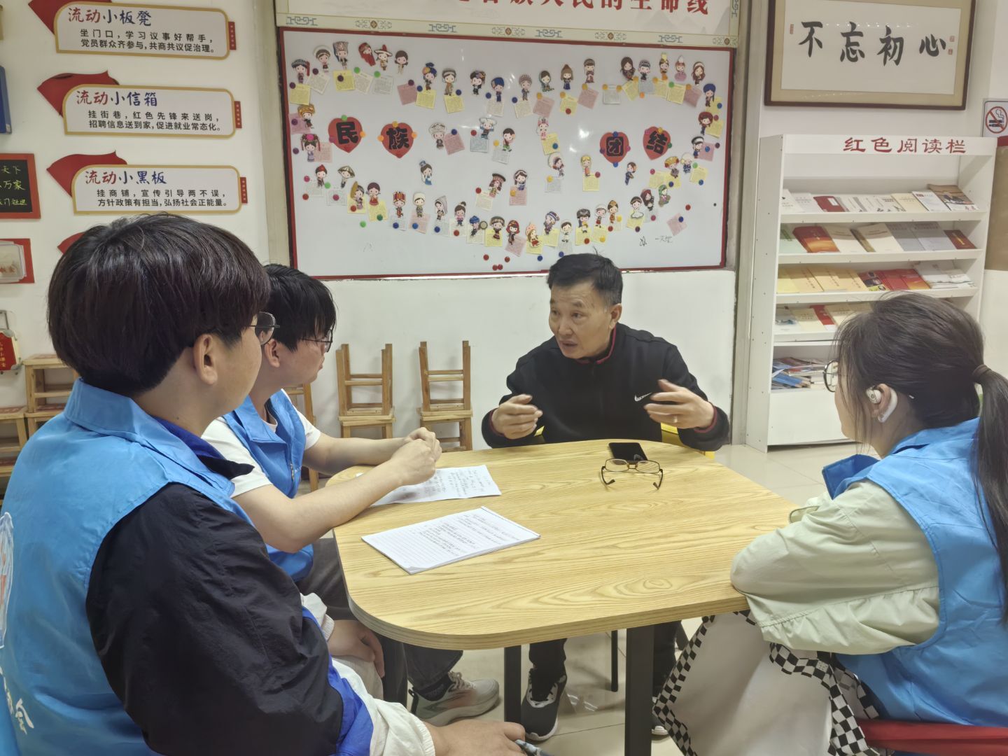 510日早晨,青年志愿者们早早的来到杨家门社区,准备与老党员朱老先生展开深入交谈和学习。朱老以亲身经历为教材,向志愿者们讲述了社会主义建设的热血岁月,从穷困潦倒的迷惘到和平年代的奋斗,从艰苦朴素的作风到坚定不移的信仰,老人家用质朴的语言再现了老一辈共产党人“为祖国献青春、为人民谋幸福”的赤诚初心。交谈过程中,志愿者们认真聆听、记录,并通过互动提问深入感悟奋斗精神的内涵。
