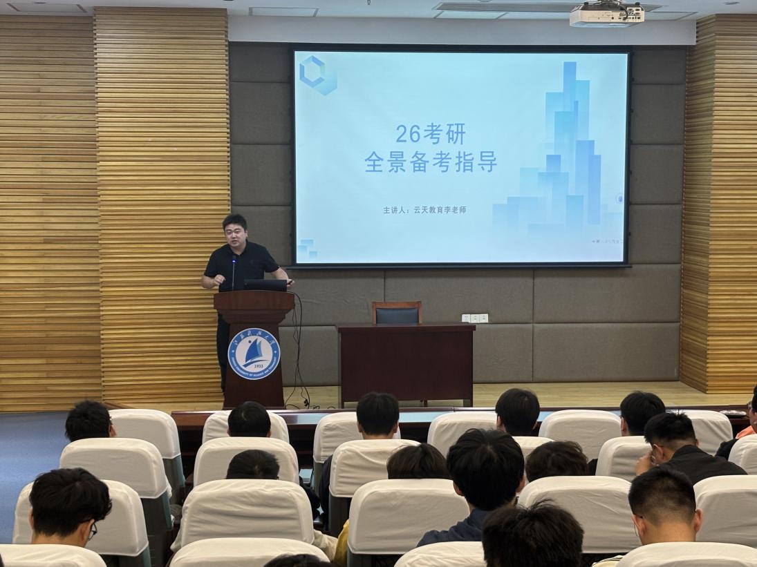 分享环节结束后,云天教育李老师以“26届考研全景备考指导”为题带来精彩讲解。他结合就业形势阐述考研必要性,剖析择校要素,解读25届考研新趋势与往届学院考研数据,还针对各科目细化复习规划、推荐适配资料。其讲解逻辑清晰、干货满满,为同学们梳理出系统的备考思路,带来全新启发。