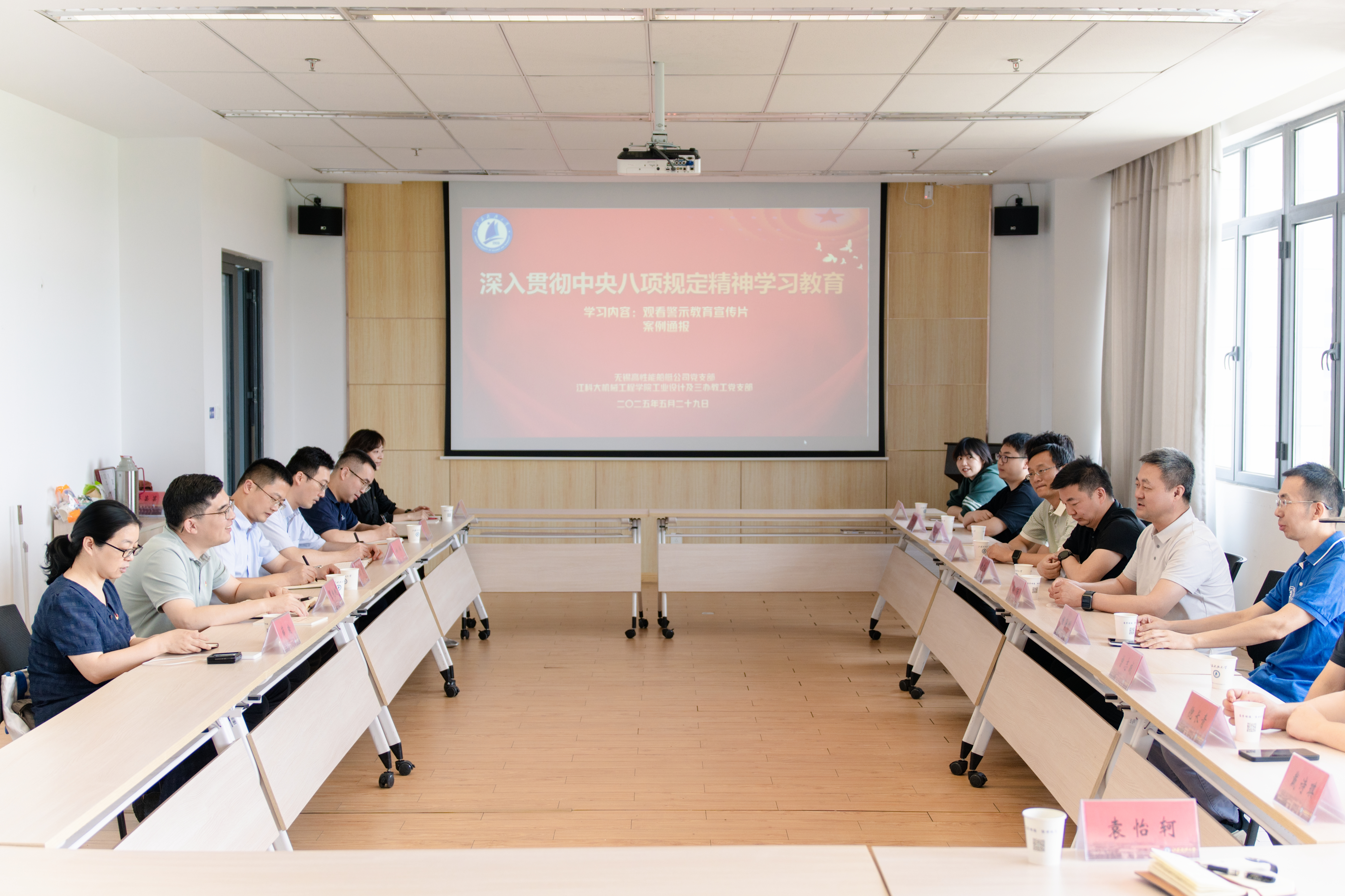 双方深入学习领会习近平总书记关于加强党的作风建设的重要论述,共同观看违反八项规定精神典型案例专题教育片,通报近期违反中央八项规定精神的典型案例。随后,翟纯纯介绍了学院党委在推进全面从严治党方面的做法成效,工业设计教师党支部书记刘李明介绍了党支部结合学科专业赋能党建创新方面的积极探索和成绩,大家结合工作实际深入交流学习体会,表示要锲而不舍落实中央八项规定精神,切实筑牢拒腐防变思想防线,永葆清正廉洁政治本色。