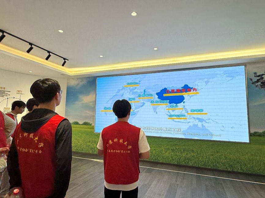 图为实践团成员在展厅观看江苏镇安电力海外重点项目分布图 吴思宇供图