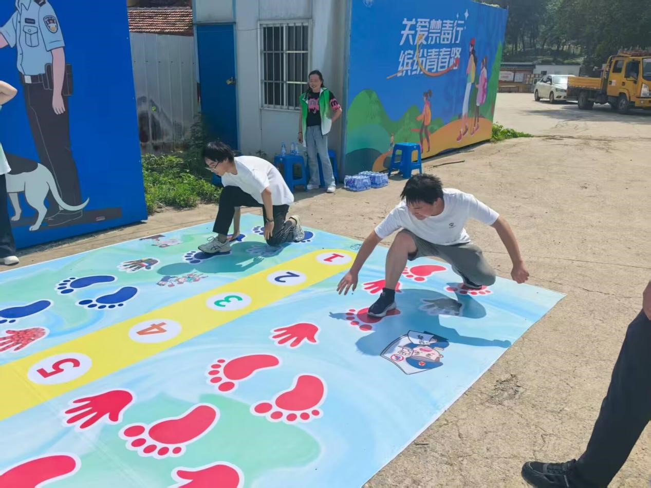 禁毒跳格子环节以跳格子游戏为基础,每格地面标注有毒品危害类型或禁毒问题。参与者跳跃的步数对应答题任务,答对可直接前进3步加速通关,答错则需在原地听志愿者讲解。在跳跃与问答的联动中,禁毒知识转化为情景化记忆。